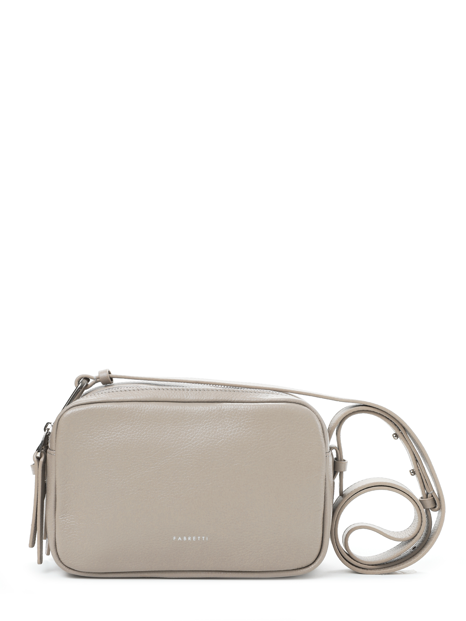 Небольшая женская сумка кросс-боди итальянского бренда FABRETTI удобна для повседневного ношения благодаря грамотной организации внутреннего пространства. Качественная зернистая кожа модели окрашена в нежный светло-серый оттенок.