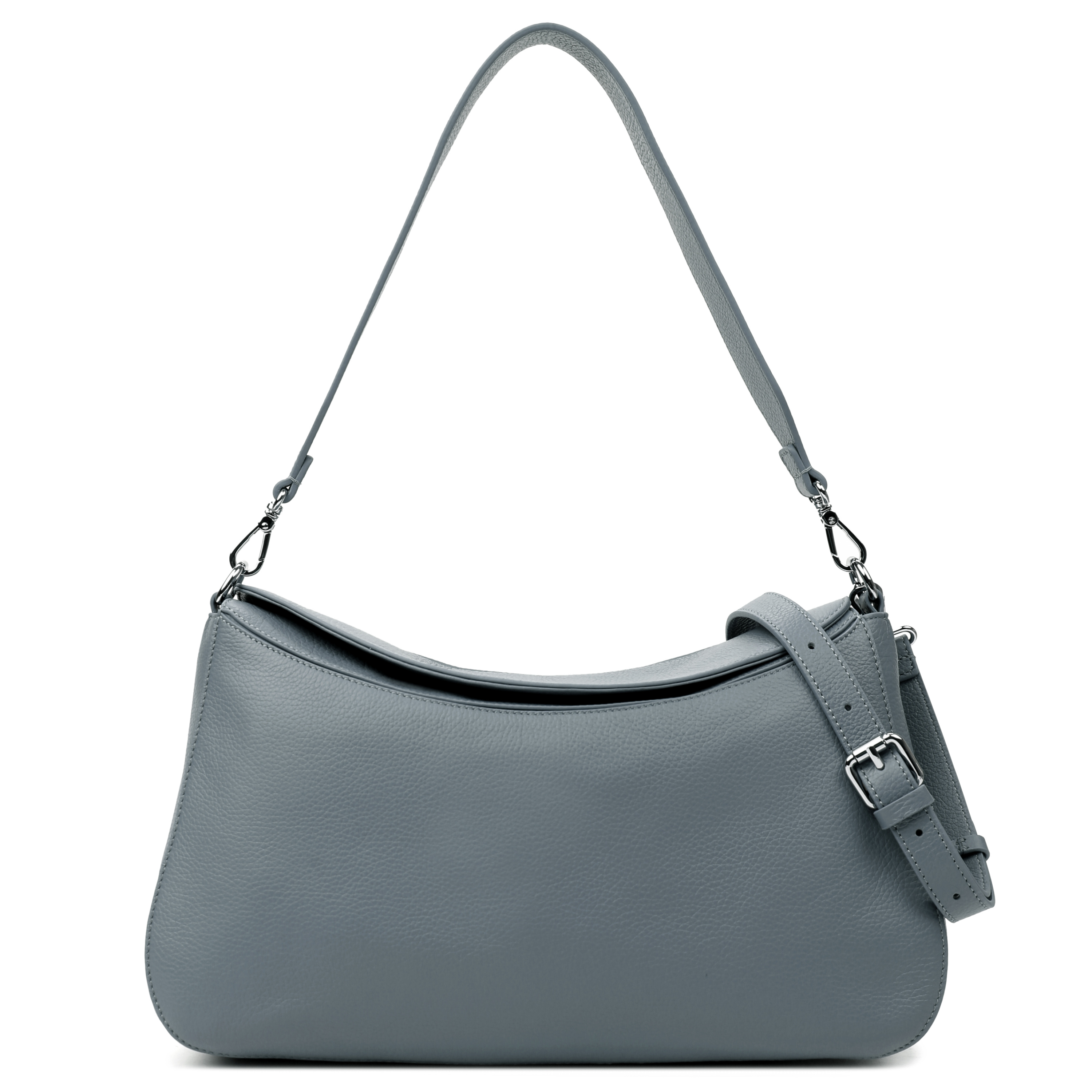 Сумка FABRETTI серого цвета, выполнена из натуральной высококачественной кожи. Имеет плечевой ремень и регулируемый ремень с пряжкой для ношения через плечо. Длина ремня - 126 см, ширина - 2 см. Основное отделение закрывается на клапан с вшитыми магнитами. Три внутренних кармана: один на молнии и два быстрого доступа. Карман на молнии с тыльной стороны. Вся фурнитура - серебряного цвета. Материал подкладки: полиэстер.