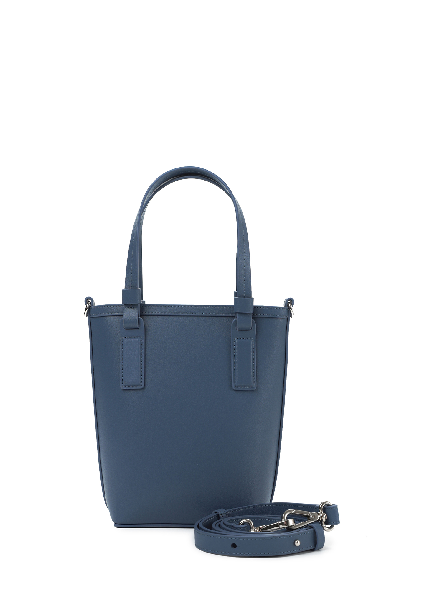 Трендовая женская сумка-ведро итальянского бренда FABRETTI из гладкой кожи кальф темного серо-голубого цвета. Необычная современная модель с жестким каркасом, которая хорошо сочетается с любым базовым кэжуал-гардеробом и визуально вытягивает силуэт.