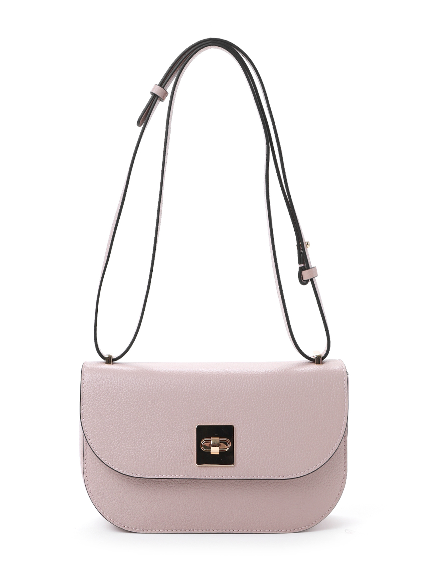 Классическая женская сумка кросс-боди итальянского бренда FABRETTI из натуральной кожи с зернистой фактурой нежного розового цвета. Чтобы подчеркнуть форму сумки, срезы швов отделаны контрастным черным кантом.