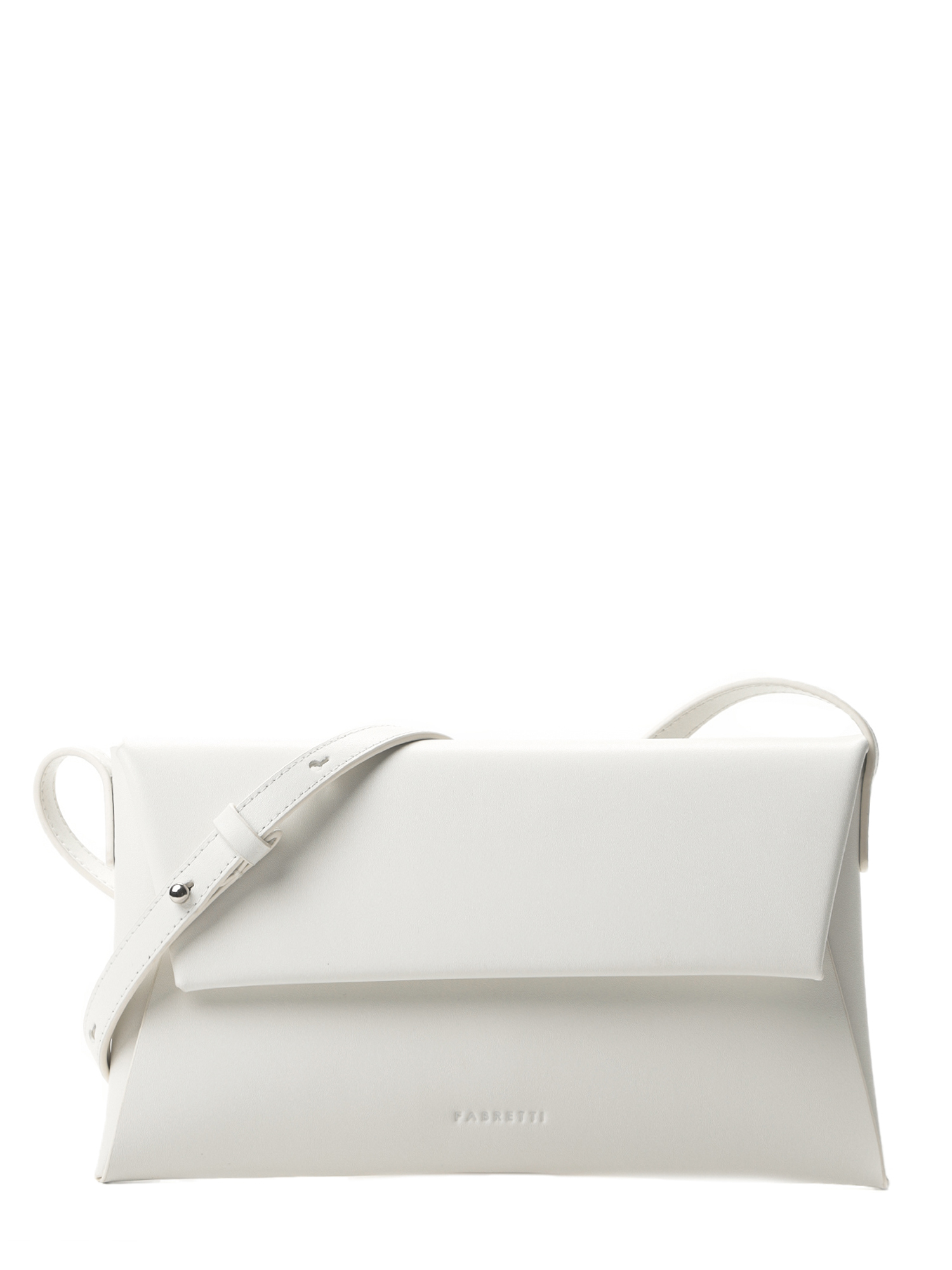 Лаконичная женская сумка-конверт итальянского бренда FABRETTI из гладкой кожи кальф белого цвета с легком бежевым оттенком. За простыми формами скрыт сложный дизайн – сумка собрана без швов в виде классического делового конверта, и без лишнего декора и фурнитуры – только строгое тиснение с лого на лицевой стороне.