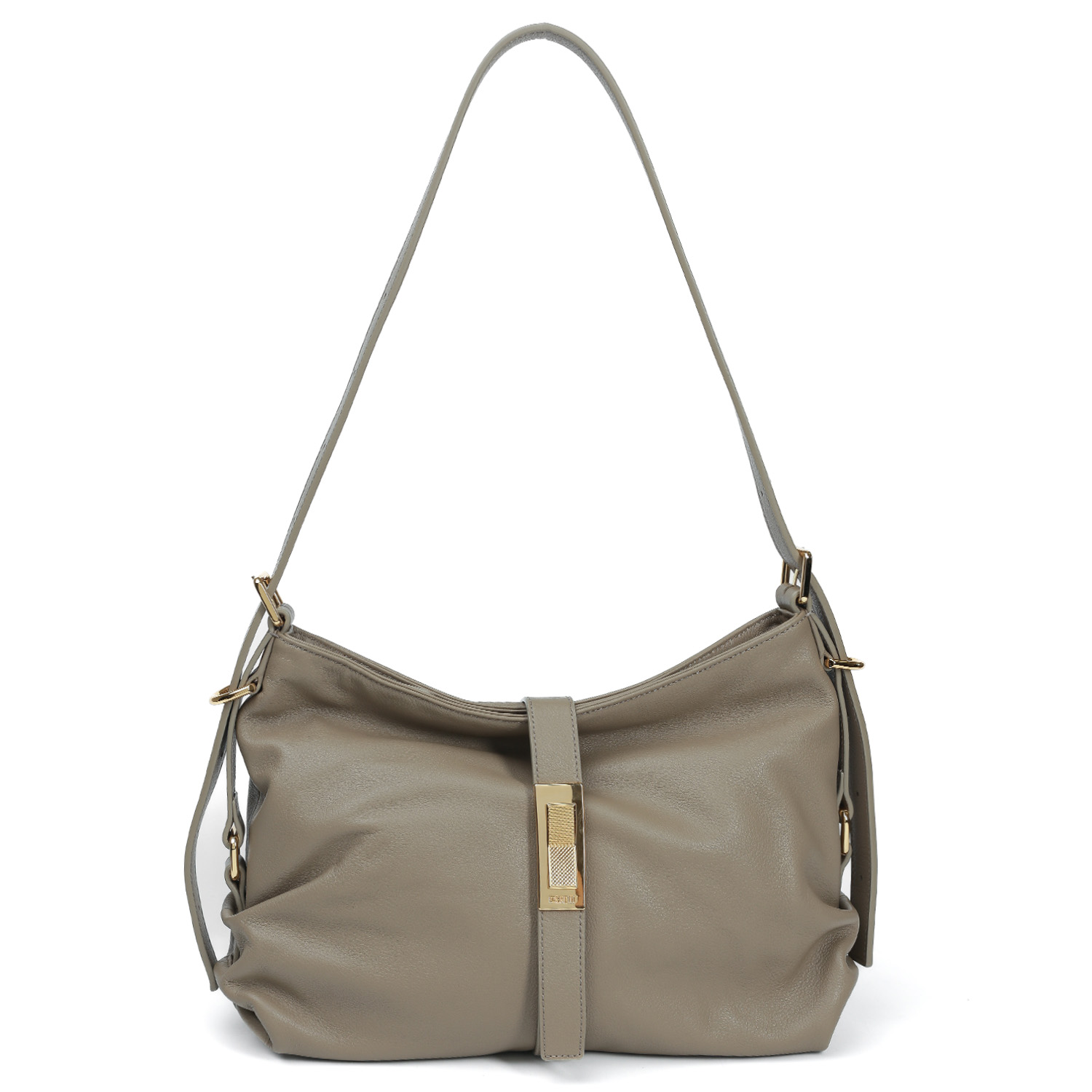 Стильная сумка-хобо премиальной серии FABRETTI в серо-бежевом оттенке тауп выполнена из натуральной зернистой кожи. Дополняет дизайн система ремней и пряжек по бокам изделия, создающая эффектные сборки, подчёркивая фактуру кожи. Сумка закрывается хлястиком на магнитном замке, декорированным крупной пряжкой. Основное отделение - на молнии с удобным кожаным поводком. Внутри 2 кармана для мелочей: открытый и на молнии. Подкладка - из натурального хлопка в темно-бежевом оттенке. Плечевой ремень регулируется по длине, ширина - 2 см. Фурнитура из никеля с покрытием - золото.