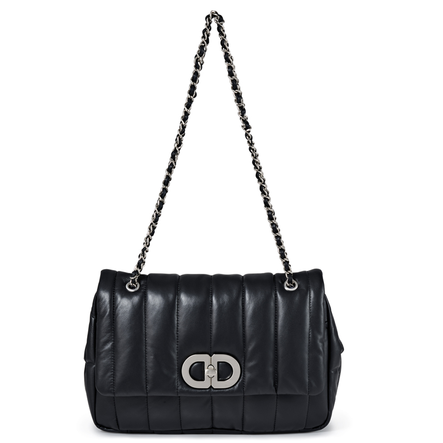 Стильная сумка на плечо FABRETTI в черном цвете выполнена из натуральной высококачественной кожи, приятной на ощупь. Основное отделение закрывается на замок с магнитным клапаном. Внутри 2 кармана для мелочей: один открытый и на молнии. Элегантный ремешок в виде цепочки позволяет удобно носить сумку на плече. На лицевой стороне закреплена блестящая фурнитура. Цвет фурнитуры - серебро.