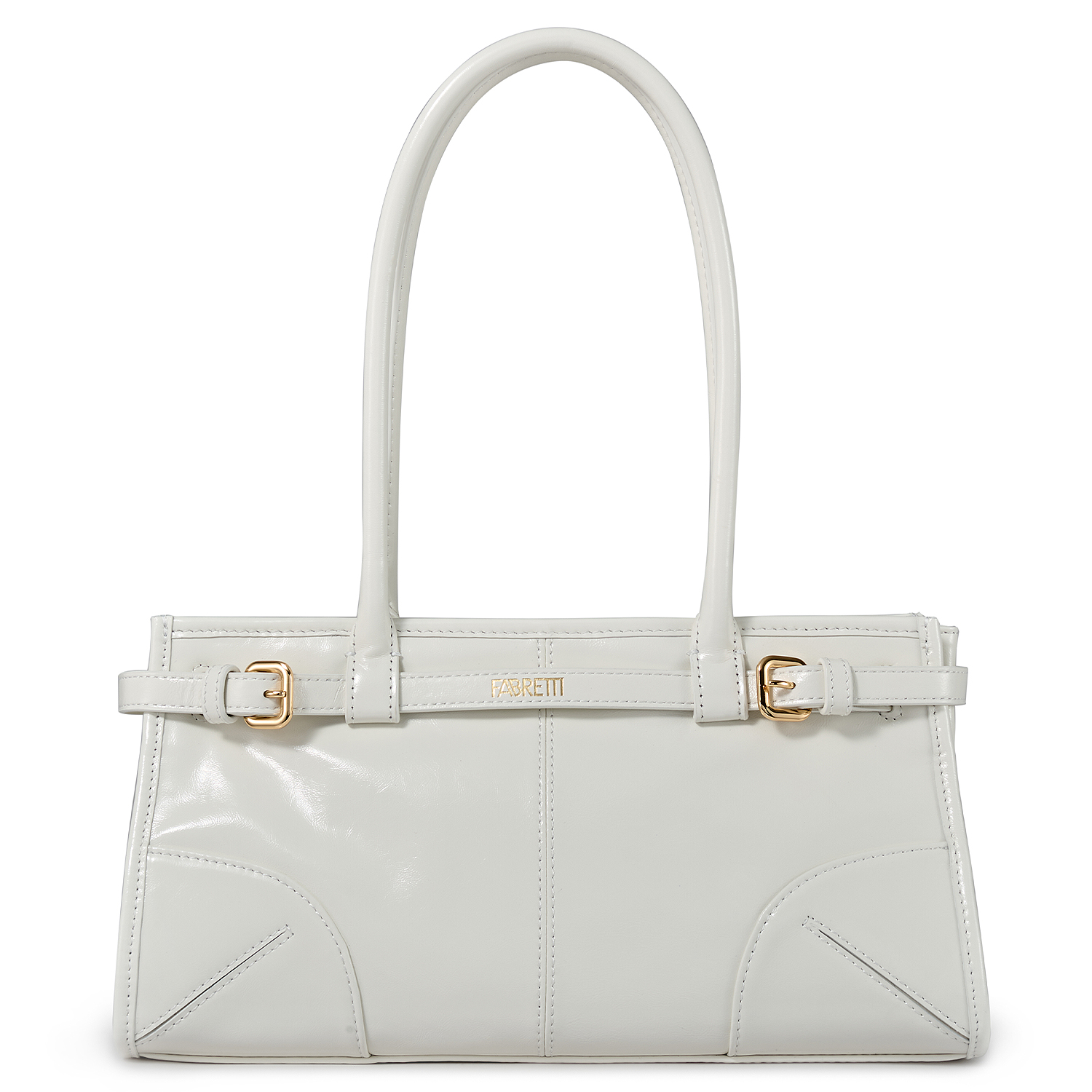 Стильная сумка на плечо FABRETTI в бежевом цвете выполнена из натуральной высококачественной кожи, приятной на ощупь. Основное отделение закрывается на молнию. Внутри 2 кармана для мелочей: один открытый и на молнии. Элегантные ручки позволяют удобно носить сумку на плече. На лицевой стороне закреплена блестящая фурнитура в виде логотипа бренда. Цвет фурнитуры - золото.