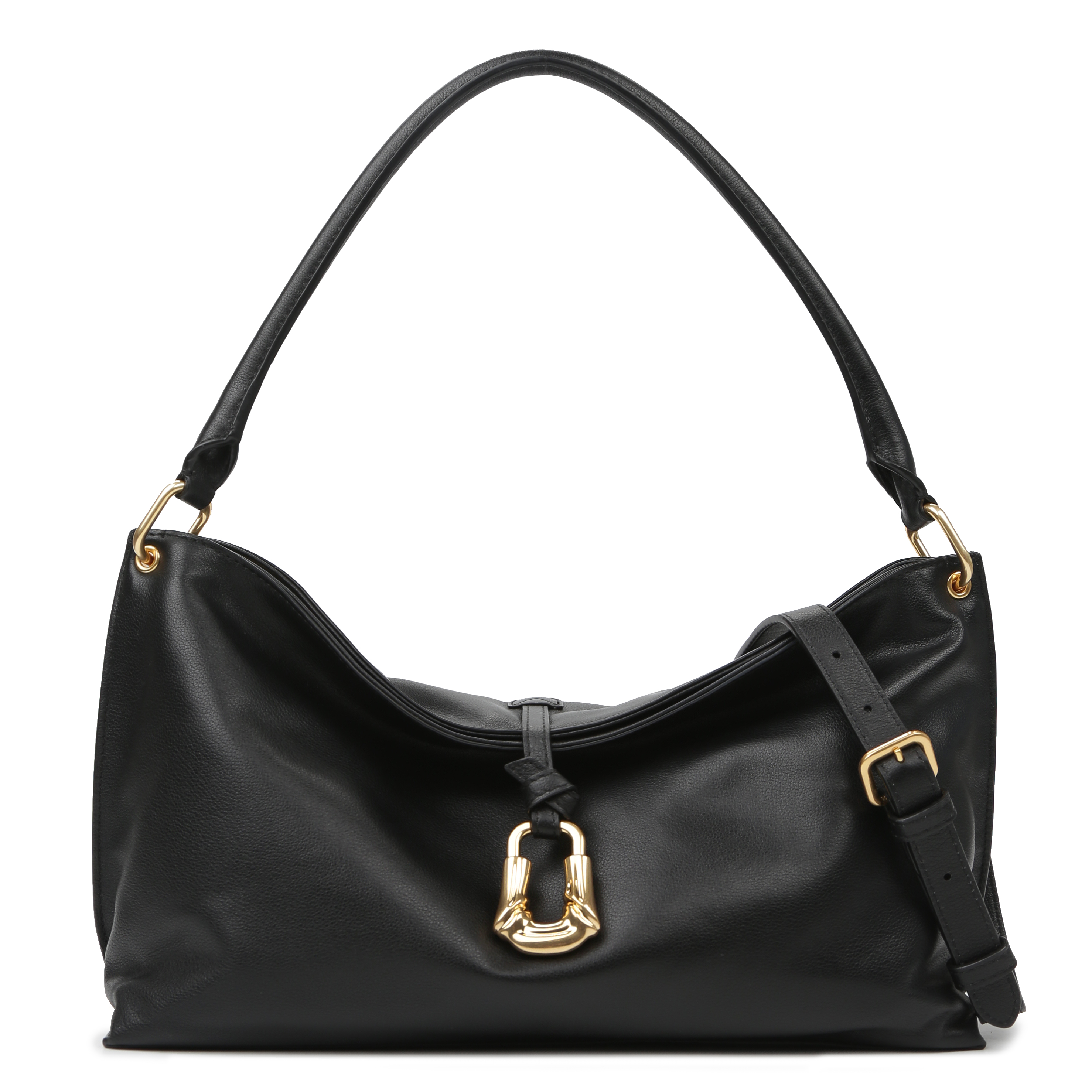 Элегантная сумка-хобо FABRETTI в черном цвете, выполненная из натуральной высококачественной кожи. Основное отделение закрывается на молнию, внутри - карман на молнии и карман быстрого доступа. Сумка имеет удобную ручку для ношения в руках или на плече. Укомплектована съемным плечевым ремнем с возможностью регулировки за счет пряжки, длина ремешка - 127 см, ширина - 1.5 см. Украшает аксессуар металлическая подвеска на кожаном ремешке. Вся фурнитура - золотого цвета. Материал подкладки: хлопок.