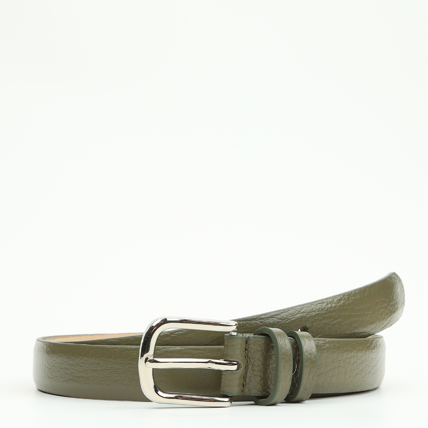 Классический женский ремень итальянского бренда FABRETTI в оттенке хаки, выполнен из натуральной кожи с крупнозернистой фактурой. Тыльная сторона - из натуральной кожи с гладкой фактурой.