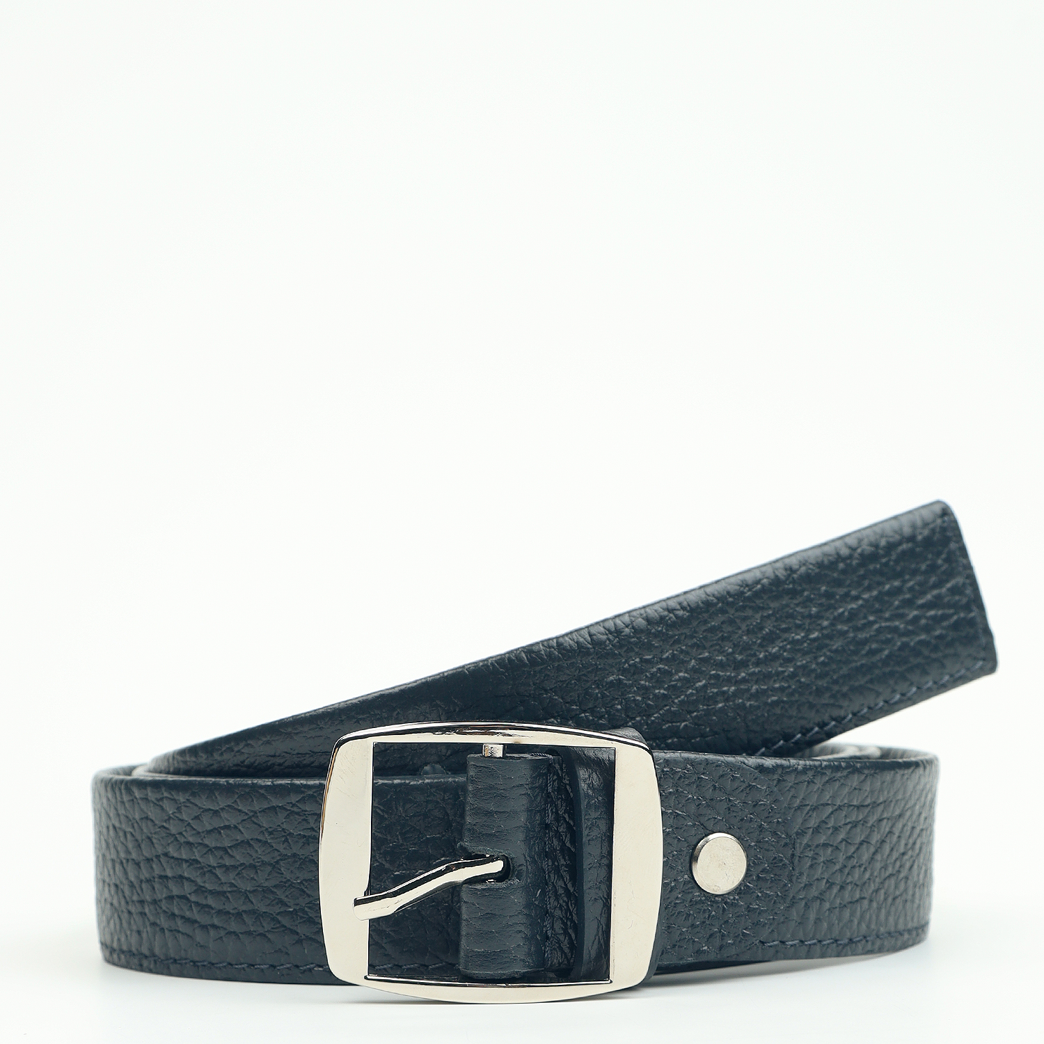 Классический женский ремень итальянского бренда FABRETTI в лаконичном темно-синем оттенке, выполнен из мягкой натуральной кожи с крупнозернистой фактурой. Ремень выполнен из сложенной и прошитой с одной стороны тонкой кожи. Таким образом, он остается мягким и легким, но при этом прочным и износостойким.