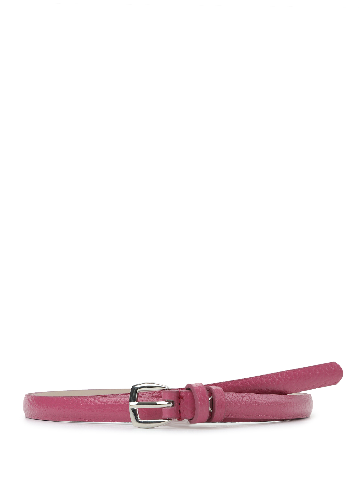 Узкий женский ремень итальянского бренда FABRETTI в ярко-розовом цвете выполнен из натуральной кожи с крупнозернистой фактурой. Тыльная сторона - из гладкого плотного спила.