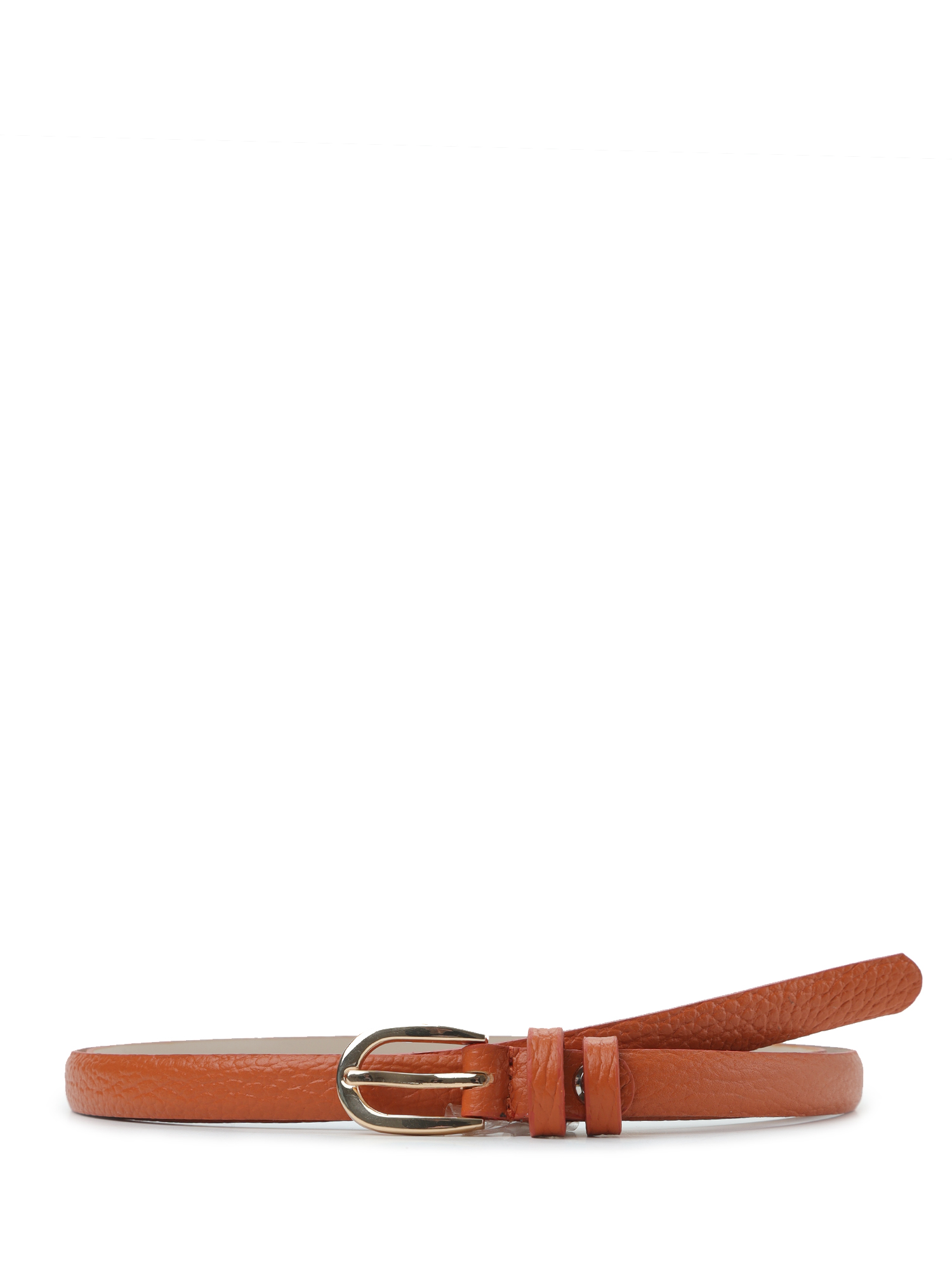 Узкий женский ремень итальянского бренда FABRETTI в теплом рыжем цвете выполнен из натуральной кожи с крупнозернистой фактурой. Тыльная сторона - из гладкого плотного спила.