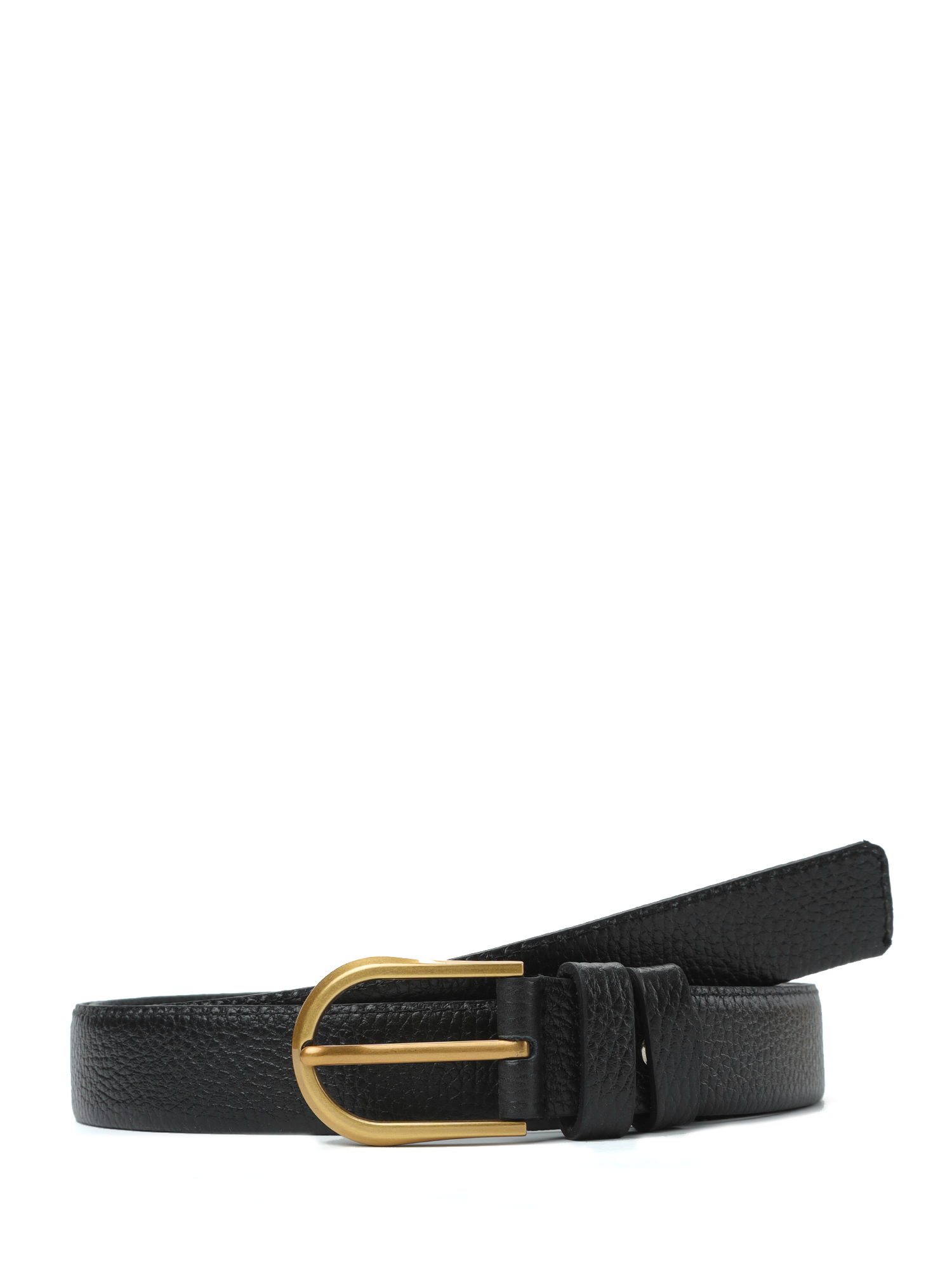 Необычный женский ремень итальянского бренда FABRETTI в классическом черном цвете выполнен из мягкой зернистой кожи. Особенность модели – двустороннее сложение кожи. Материал прошит с одной стороны. Такая конструкция делает ремень более мягким и гибким.