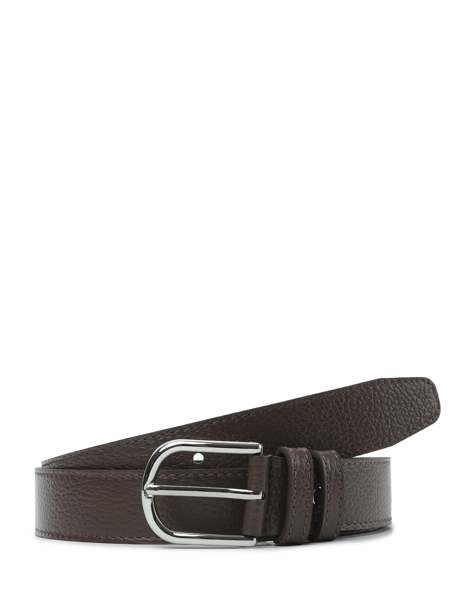 Стильный широкий женский ремень итальянского бренда FABRETTI в темно-коричневом оттенке, выполнен из натуральной кожи с крупнозернистой фактурой. Тыльная сторона - из кожи гладкой фактуры. Модель дополнена большой округлой вытянутой пряжкой из прочного гальванического сплава с покрытием серебро. Пряжка крепится к изделию с помощью винта, что позволяет легко отрегулировать длину. Ремень отстрочен по краям в тон коже.
