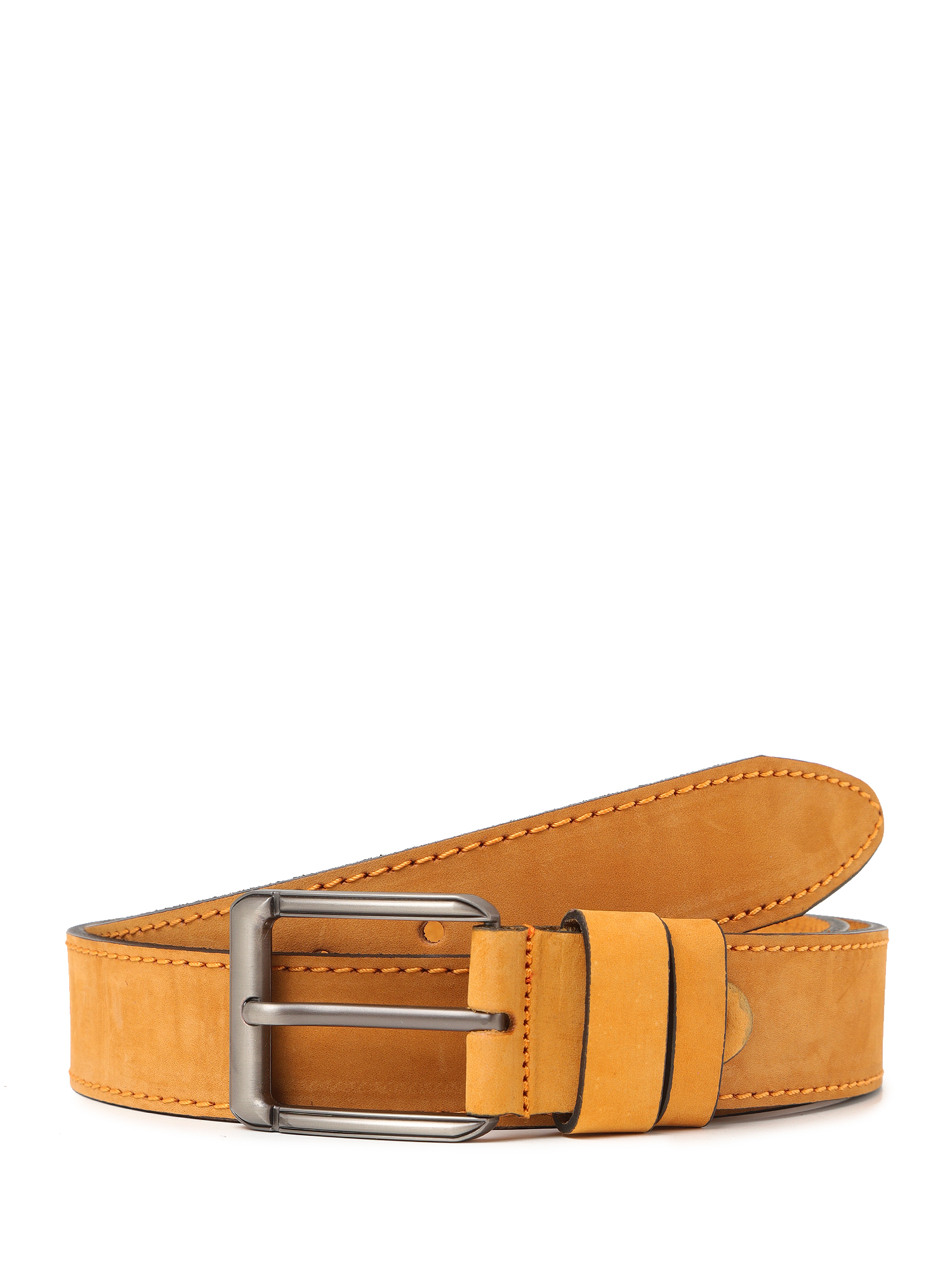 Стильный мужской ремень из высококачественного нубука от итальянского бренда FABRETTI – яркий акцент для любого образа. Широкий ремень горчичного цвета подходит для ношения с джинсами. Он дополнен крупной прямоугольной пряжкой цвета черненого никеля; по краям идет шов отстрочки в тон коже.