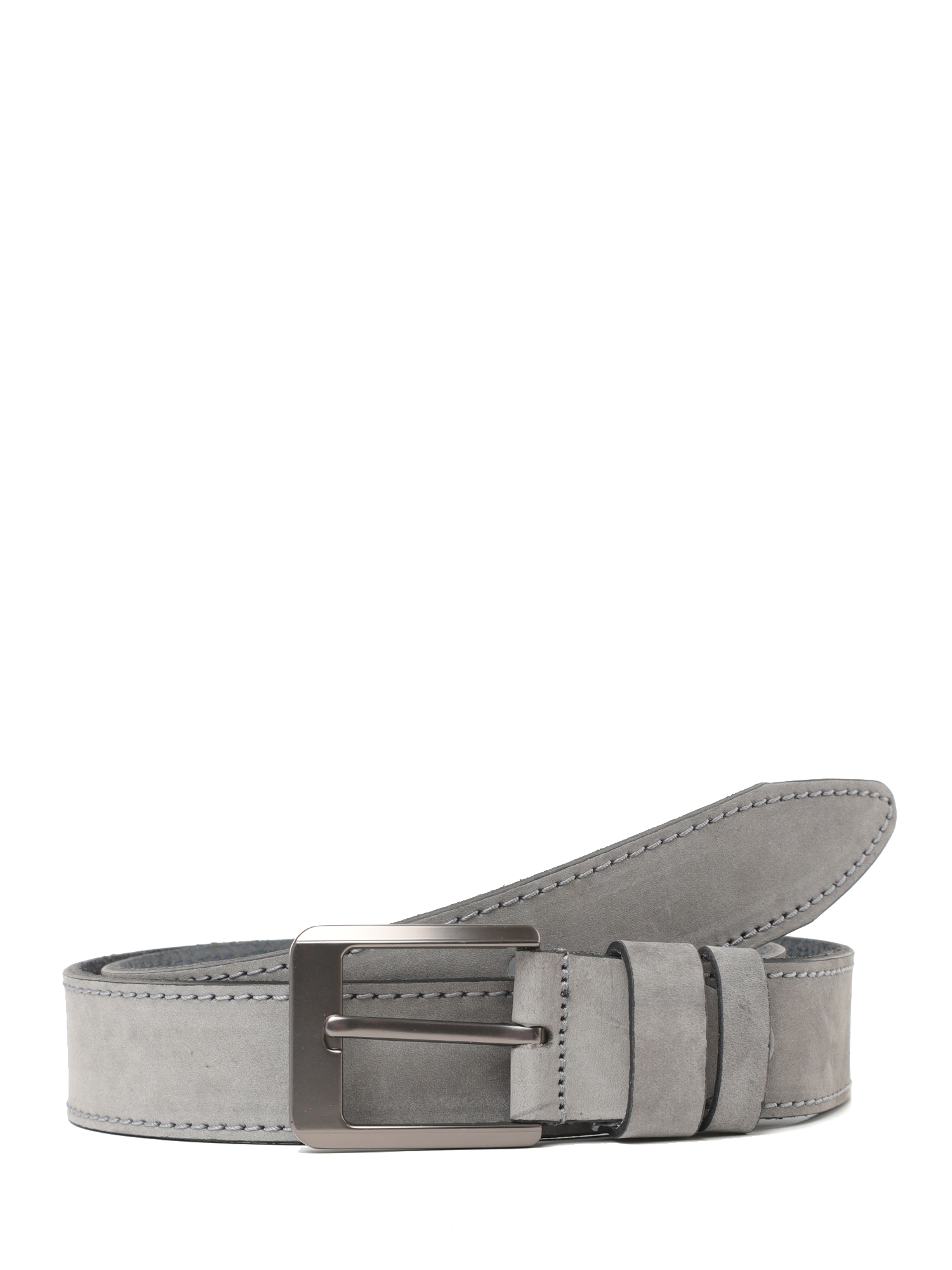 Стильный мужской ремень из высококачественного нубука от итальянского бренда FABRETTI – яркий акцент для любого образа. Широкий ремень светло-серого цвета подходит для ношения с джинсами. Он дополнен крупной прямоугольной пряжкой цвета черненого никеля; по краям идет шов отстрочки в тон коже.