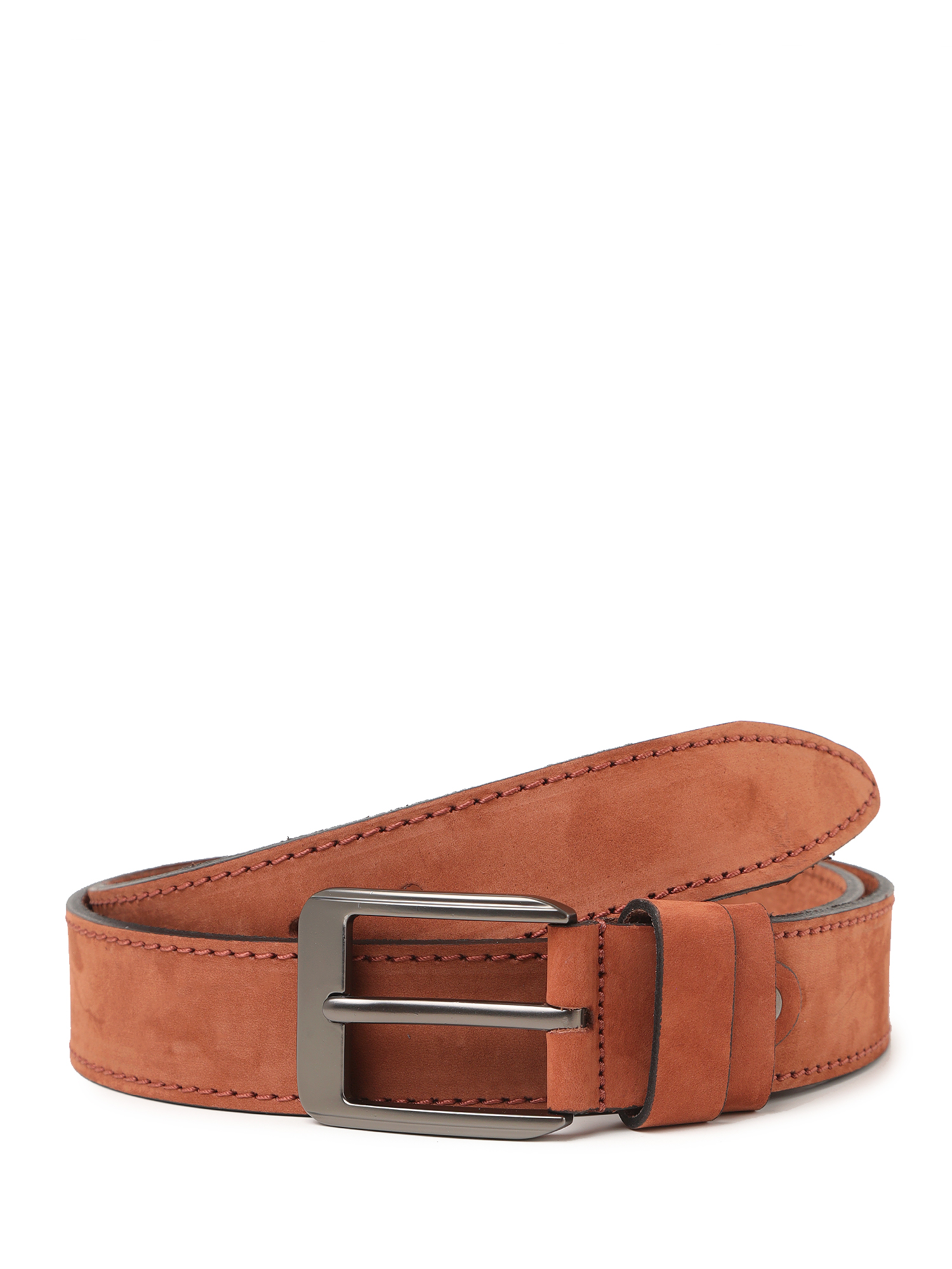Стильный мужской ремень из высококачественного нубука от итальянского бренда FABRETTI – яркий акцент для любого образа. Широкий ремень рыже-коричневого цвета подходит для ношения с джинсами. Он дополнен крупной прямоугольной пряжкой цвета черненого никеля; по краям идет шов отстрочки в тон коже.