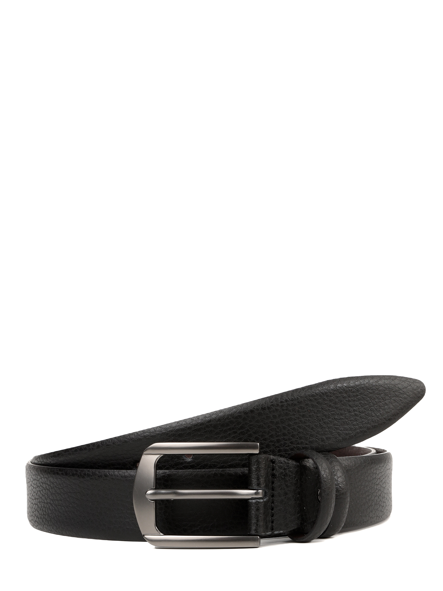 Аксессуар дополнен крупной прямоугольной пряжкой оттенка матовый черненый никель. Две шлевки из гладкой кожи в тон изделию: одна закреплена, вторая - подвижная. Пряжка съемная, на винте, для самостоятельной корректировки длины ремня.