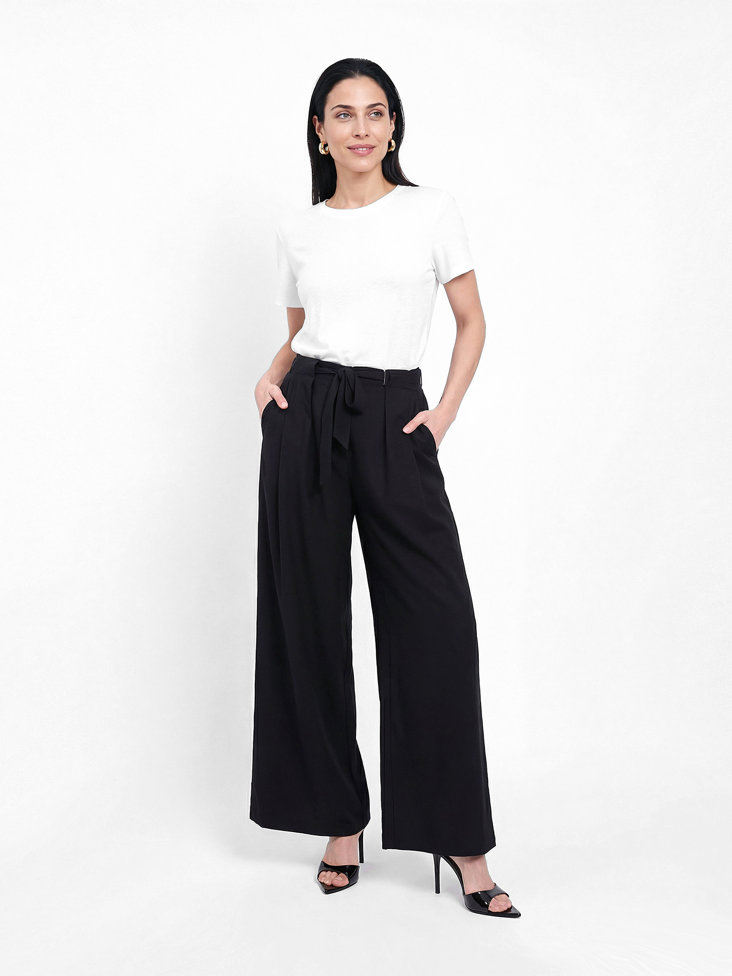 Свободные женские брюки итальянского бренда FABRETTI в черном цвете – универсальный вариант для жаркого сезона.