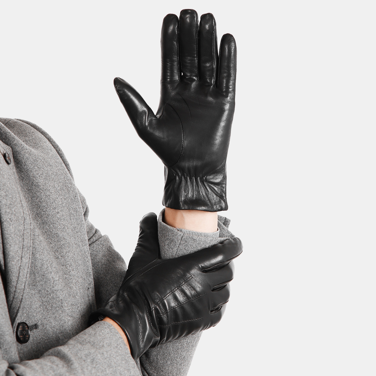Классические мужские перчатки FABRETTI в черном цвете выполнены из натуральной кожи ягненка и отличаются гладкой фактурой. Лицевая сторона украшена строчкой в виде 3 лучей. Резинка на внутренней стороне манжеты обеспечивает удобное расположение модели на запястье.  Подкладка из натуральной шерсти поможет комфортно себя чувствовать в холодную погоду. Прекрасный вариант для морозной погоды.
