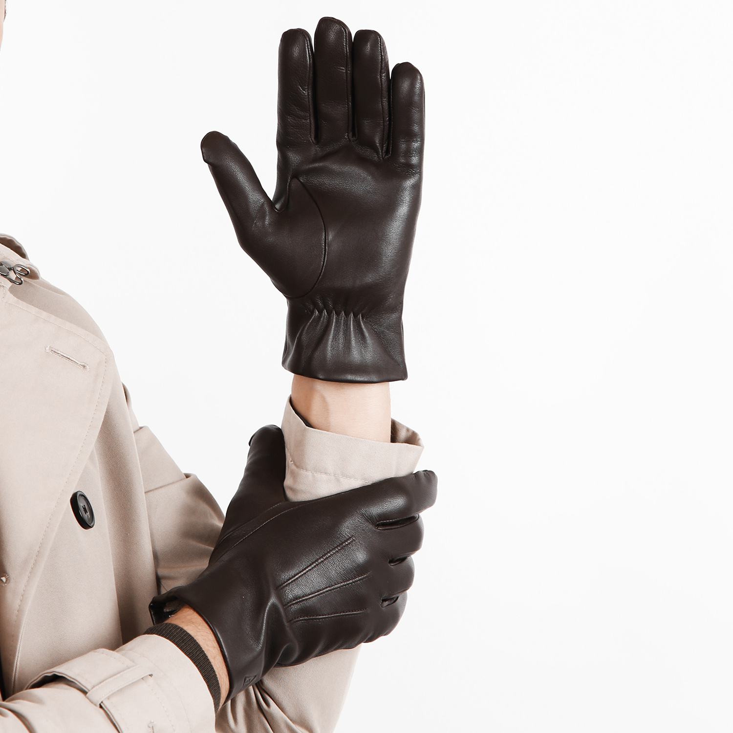 Классические мужские перчатки FABRETTI в коричневом оттенке выполнены из натуральной кожи ягненка и отличаются гладкой фактурой. Лицевая сторона украшена строчкой в виде 3 лучей. Резинка на внутренней стороне манжеты обеспечивает удобное расположение модели на запястье.  Подкладка из натуральной шерсти поможет комфортно себя чувствовать в холодную погоду. Прекрасный вариант для морозной погоды.
