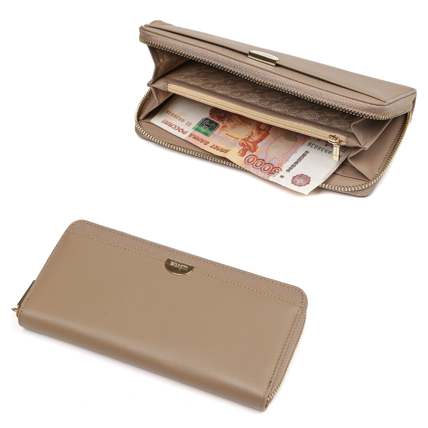 Вместительный женский кошелек FABRETTI в бежевом оттенке выполнен из натуральной гладкой кожи и на лицевой стороне декорирован вставкой из натуральной кожи с тиснением под ската. Кошелек закрывается на полукруглую молнию с металлическим поводком. Внутри 2 отделения на полную купюру, разделенные карманом на молнии, 2 открытых боковых кармана, 12 слотов для банковских карт. На лицевой стороне расположен открытый карман быстрого доступа, декорированный изящной фурнитурой. Цвет фурнитуры - золото.