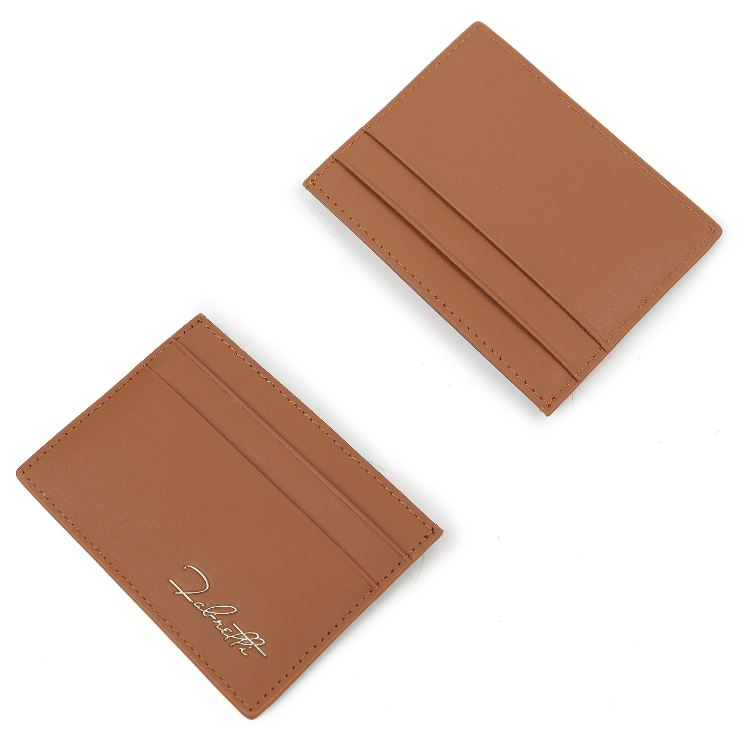Визитница выполнена из гладкой натуральной кожи в светло-коричневом оттенке; имеет одно основное отделение и по два слота для карт с обеих сторон.