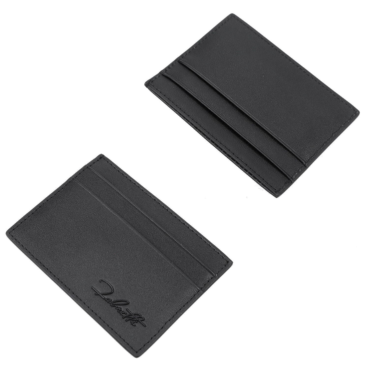 Визитница выполнена из гладкой натуральной кожи в черном цвете; имеет одно основное отделение и по два слота для карт с обеих сторон.