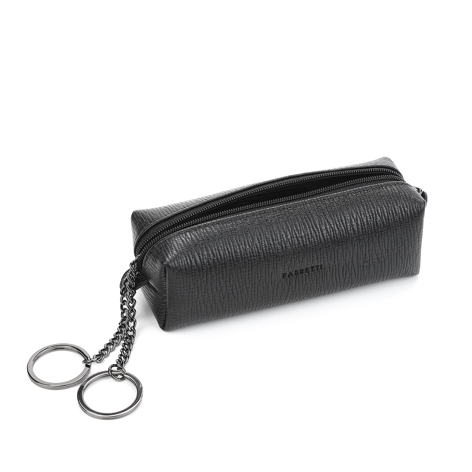 Мужская ключница итальянского бренда FABRETTI увеличенного размера для комфортного хранения ваших ключей и аксессуаров. Она выполнена из натуральной кожи с рельефным тиснением в классическом черном цвете, закрывается на пластиковую молнию.