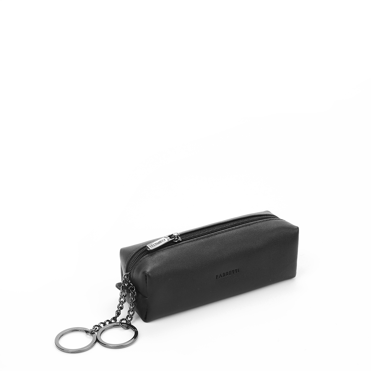 Мужская ключница итальянского бренда FABRETTI увеличенного размера для комфортного хранения ваших ключей и аксессуаров. Она выполнена из мягкой натуральной кожи наппа в классическом черном цвете, закрывается на пластиковую молнию.