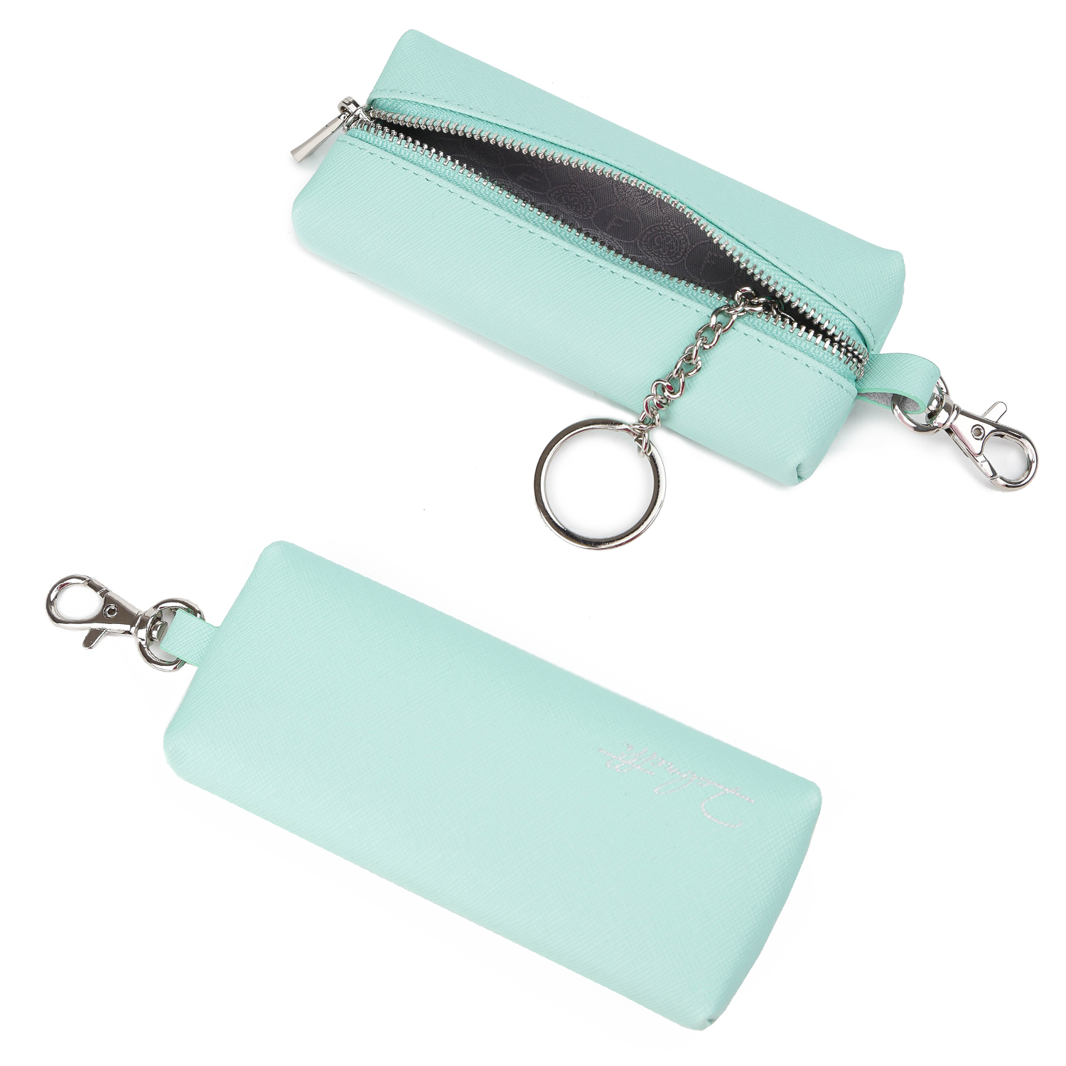 Удобная компактная ключница FABRETTI выполнена из натуральной кожи сафьяно. Лаконичный дизайн, бирюзовый оттенок и фурнитура под серебро превращают модель в модный аксессуар, который защитит вещи от сколов и подчеркнет статус. Внутри - 1 отделение для ключей, а также удобный металлический держатель на цепочке. На внешней стороне предусмотрен карабин.