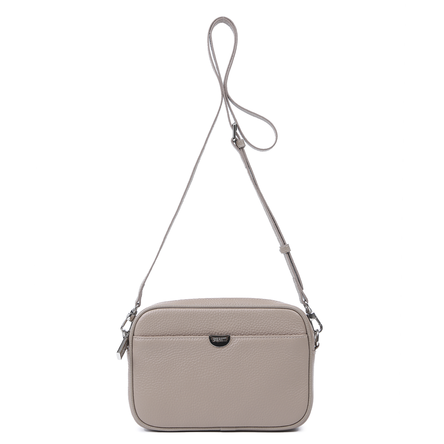 Компактная женская сумка-кошелек через плечо итальянского бренда FABRETTI выполнена из натуральной крупнозернистой кожи светло-бежевого оттенка. Основное отделение закрывается на молнию, внутри открытый боковой карман. На лицевой стороне расположен открытый карман, украшенный логотипом, на тыльной стороне карман с магнитным замком.