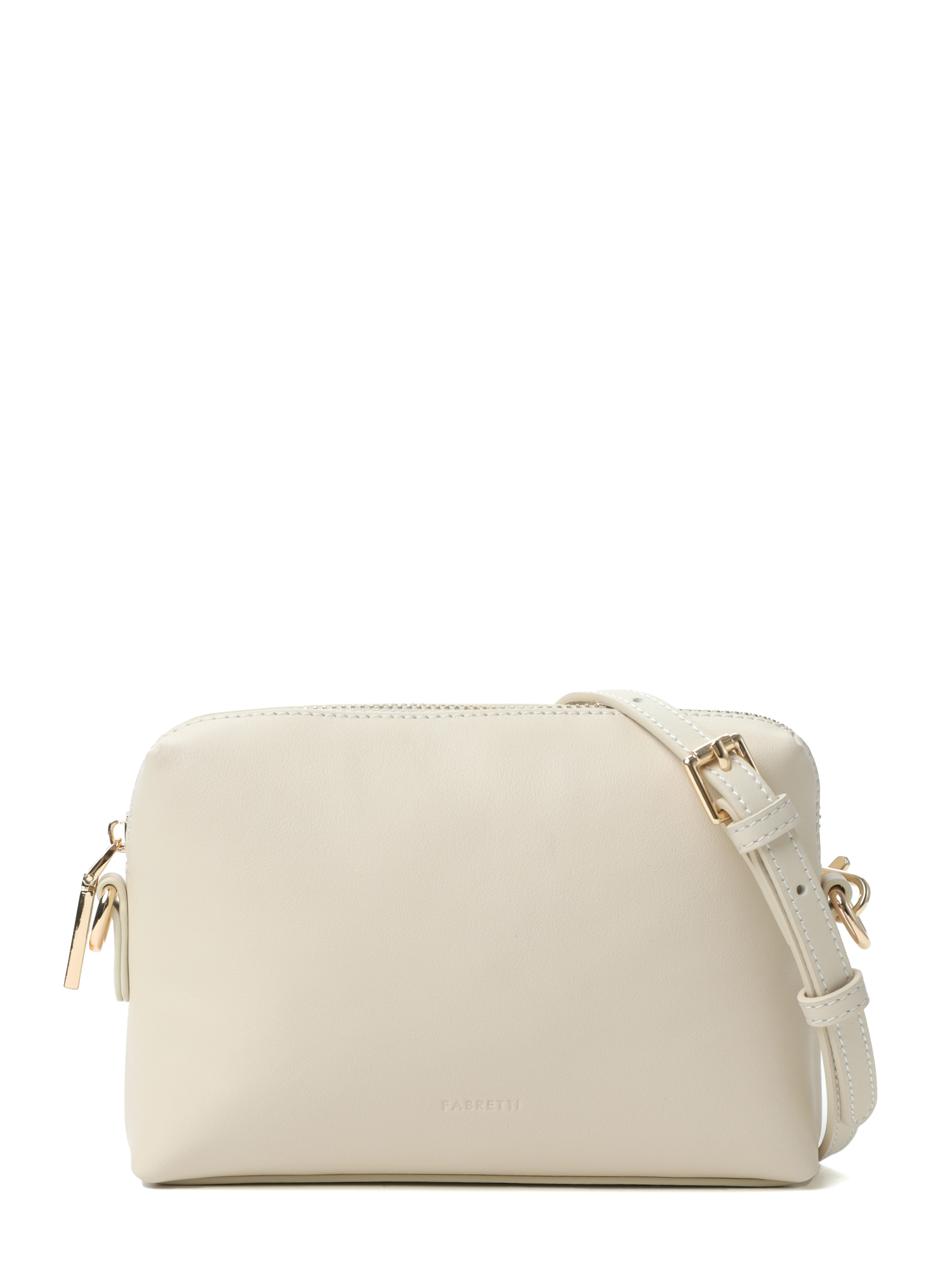 Великолепная миниатюрная женская сумка кросс-боди итальянского бренда FABRETTI из матовой кожи наппа светло-бежевого цвета. Единственное отделение застегивается на металлическую молнию. Внутри отделения небольшой карман на молнии. Сумка дополнена текстильной подкладкой в стиле логомании. Тонкий съемный ремешок регулируется по размеру пряжкой, длина ок. 115см, 7 отверстий; крепится при помощи карабинов. На лицевой стороне лаконичное тиснение с логотипом. Цвет фурнитуры – золото.