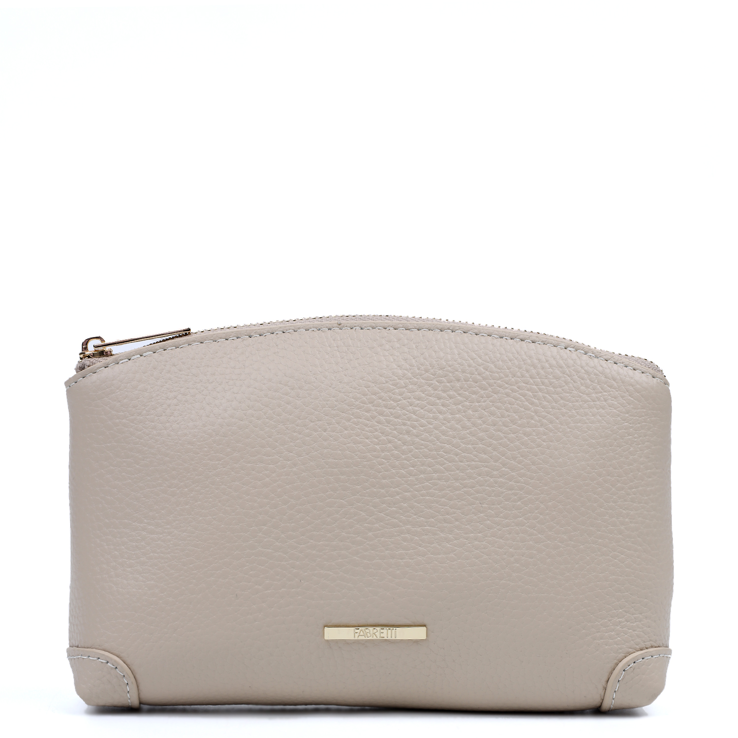 Женская косметичка итальянского бренда FABRETTI из натуральной кожи с крупнозернистой фактурой в светло-бежевом цвете.