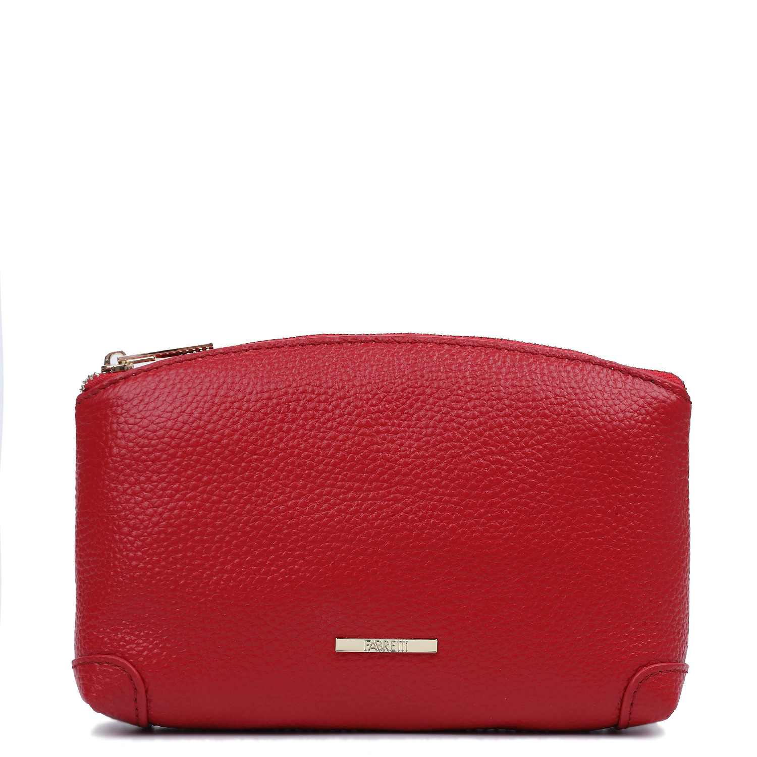 Женская косметичка итальянского бренда FABRETTI из натуральной кожи с крупнозернистой фактурой в красном цвете.