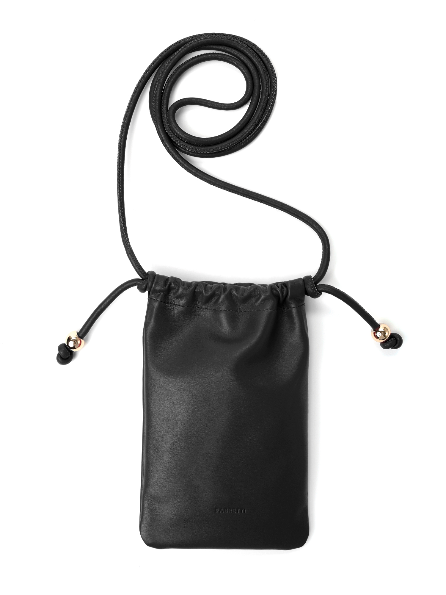 Лаконичная вертикальная женская сумка для телефона итальянского бренда FABRETTI выполнена из мягкой натуральной кожи наппа в черном цвете с гладкой фактурой. Основное отделение закрывается на кулиску.
