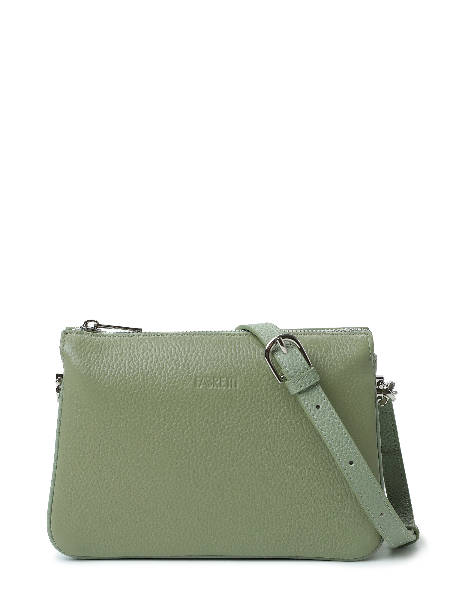 Лаконичная женская сумка кросс-боди итальянского бренда FABRETTI из крупнозернистой кожи в необычном оливковом оттенке. Минималистичная прямоугольная модель с жестким кантом по краю прекрасно держит форму в любом состоянии. У модели три отделения, закрывающиеся на одну общую молнию. В центральной секции открытый карман и карман на молнии. Лицевая сторона украшена тисненым логотипом, на тыльной карман быстрого доступа на молнии.