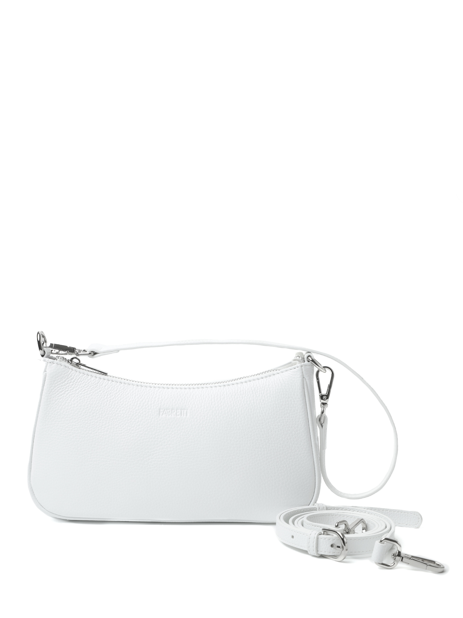 Небольшая женская сумка кросс-боди итальянского бренда FABRETTI из натуральной кожи с зернистой фактурой в холодном белом цвете.