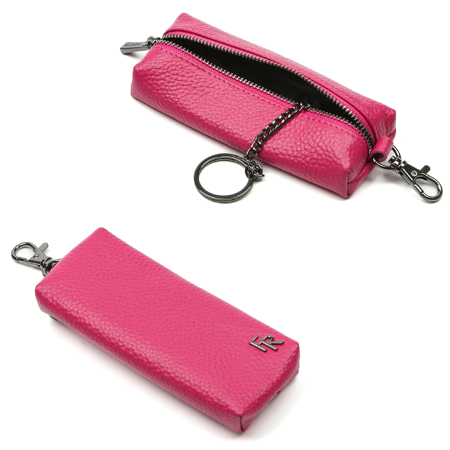 Удобная компактная ключница FABRETTI выполнена из натуральной зернистой кожи. Лаконичный дизайн, насыщенный оттенок фуксии и фурнитура с покрытием черненый никель превращают модель в модный аксессуар, который защитит вещи от сколов и подчеркнет статус.