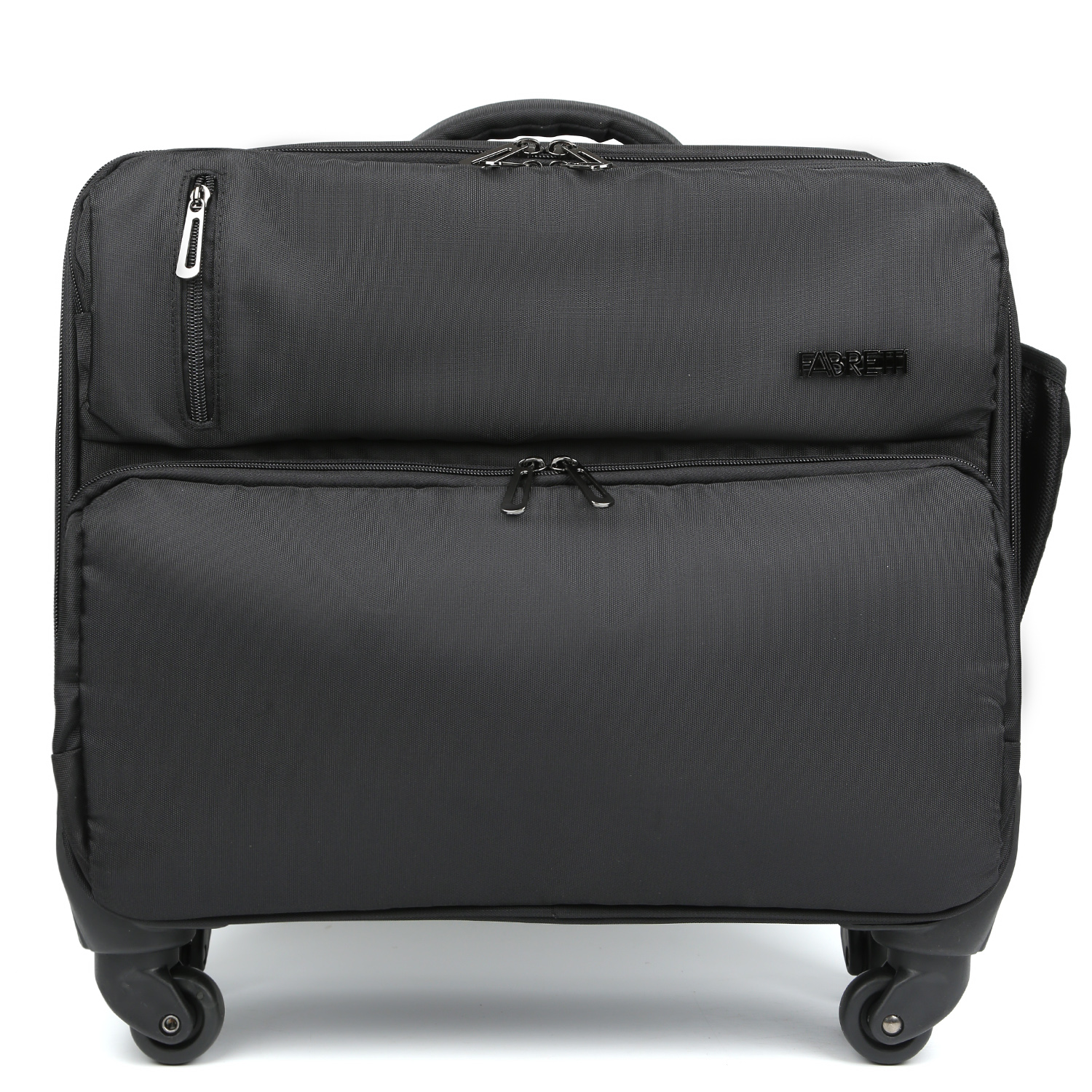 Кейс-пилот FABRETTI 4-х колесный в черном цвете выполнен из плотного, стойкого к влаге и износу полиэстера.