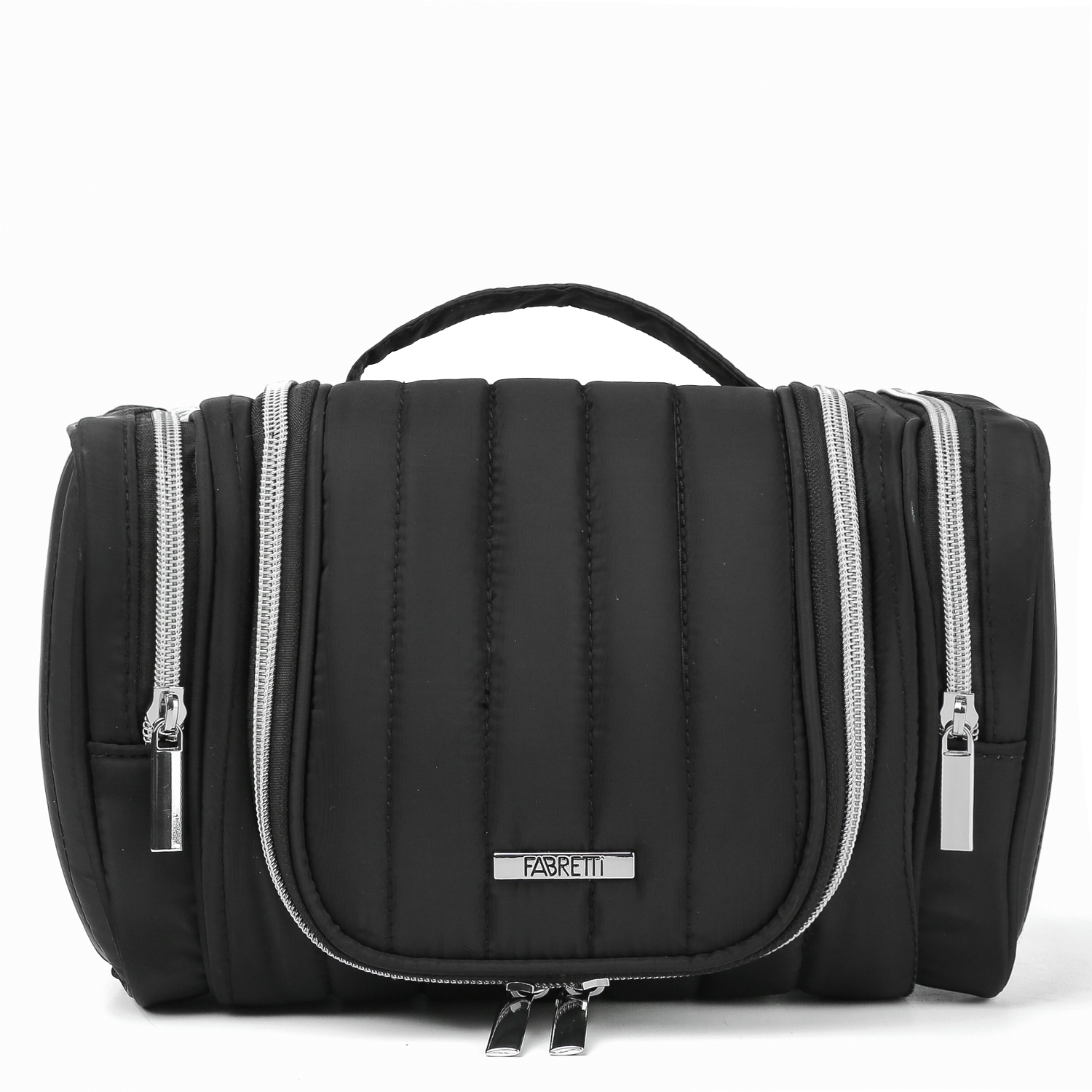 Несессер FABRETTI в черном оттенке выполнен из высокотехнологичной ткани, которая устойчива к воздействию влаги и перепаду температур. Аксессуар закрывается на  молнию. Внутри просторного отделения предусмотрены 2 открытых кармана. На клапане находятся 2 боковых сетчатых кармана на молнии. На лицевой стороне расположены 2 боковых кармана  на молнии. Классическая прямоугольная форма и универсальный размер позволяют использовать аксессуар дома, в дороге и в повседневной жизни.