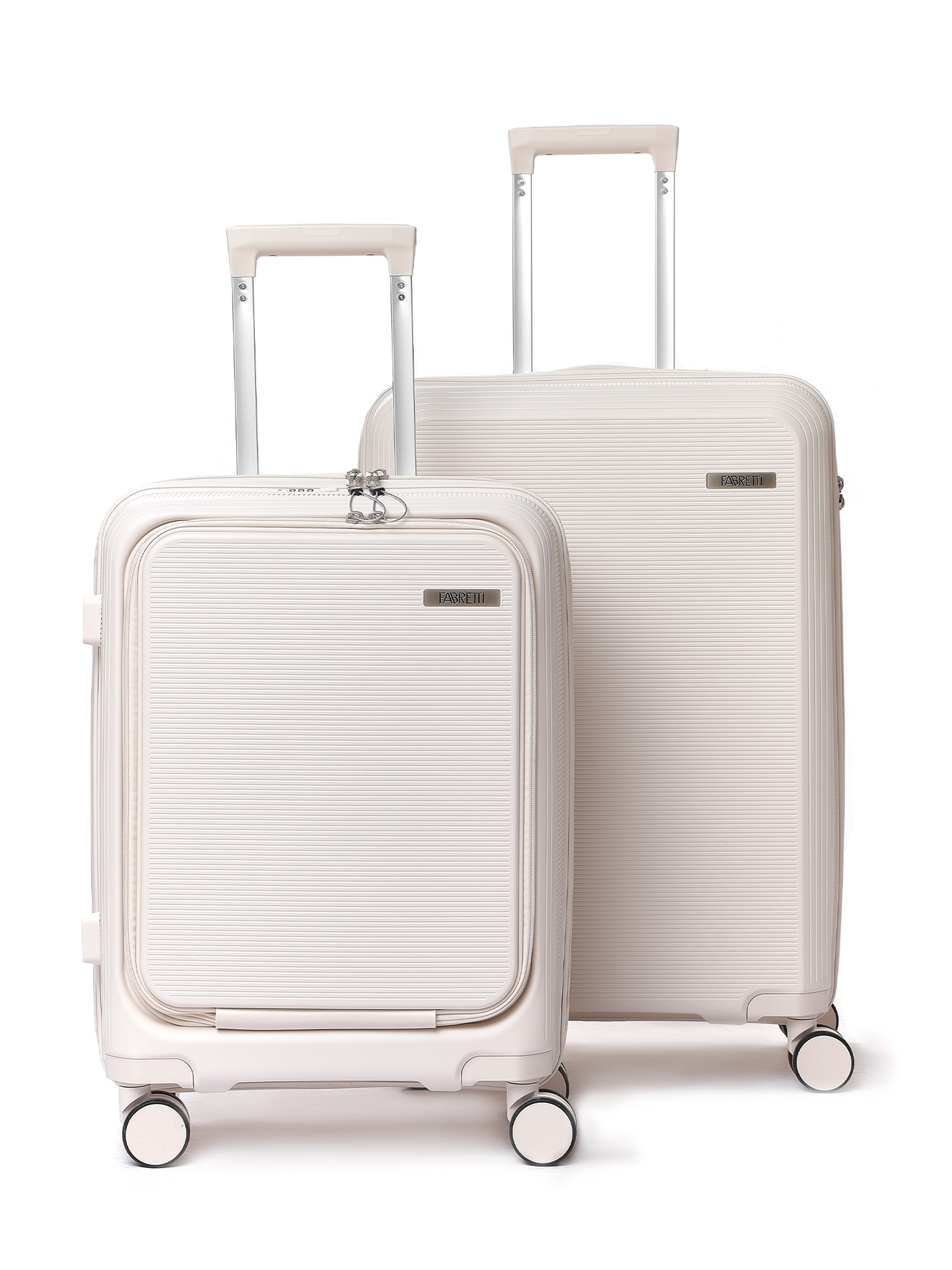 Лаконичный и функциональный дорожный чемодан из технологичного пролипропилена нежного молочно-белого цвета с вертикальной загрузкой – идеальный выбор для путешествия. Он имеет высокую прочность, жесткость, повышенные противоударные характеристики, стойкость к механическому воздействию. Чемодан оснащен фиксаторами для одежды, разделителем на молнии с карманом для мелочей, а также боковыми ручками и пластиковыми ножками для устойчивости в горизонтальном положении.