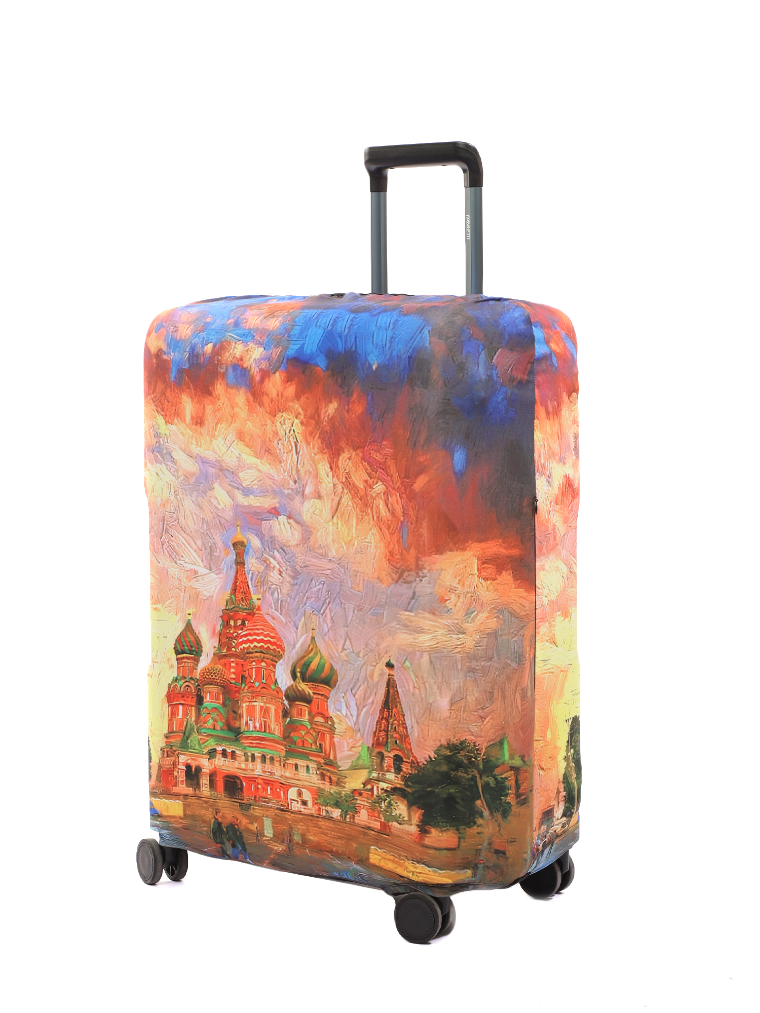 Стильный чехол итальянского бренда FABRETTI с ярким живописным принтом Красной Площади подойдет для чемодана большого размера L. Созданный из высокотехнологичного полиэстера и спандекса, он эластичен, вынослив и прост в уходе. Чехол поможет защитить багаж от загрязнений и царапин. Кроме того, сэкономит время и деньги на упаковке чемодана в багажную пленку в аэропорту. Благодаря оригинальному дизайну чемодан будет легко найти на багажной ленте в аэропорту.