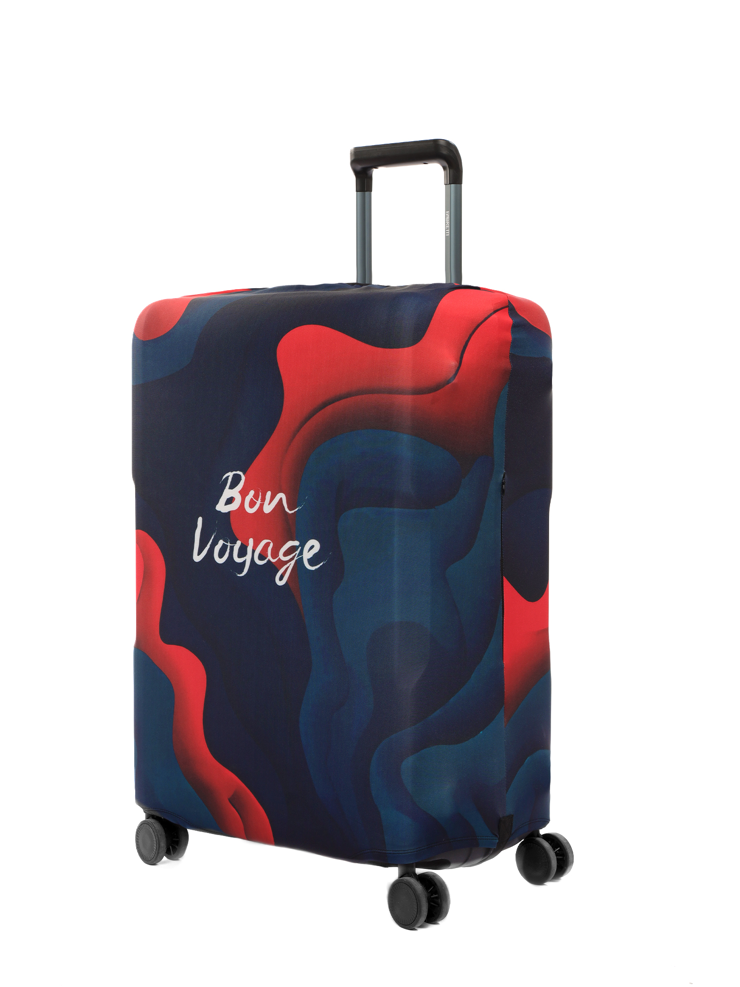 Стильный чехол итальянского бренда FABRETTI с абстрактными  синими и красными разводами и волнами подойдет для чемодана среднего размера M. Созданный из высокотехнологичного полиэстера и спандекса, он эластичен, вынослив и прост в уходе. Чехол поможет защитить багаж от загрязнений и царапин. Кроме того, сэкономит время и деньги на упаковке чемодана в багажную пленку в аэропорту. Благодаря оригинальному дизайну чемодан будет легко найти на багажной ленте в аэропорту.
