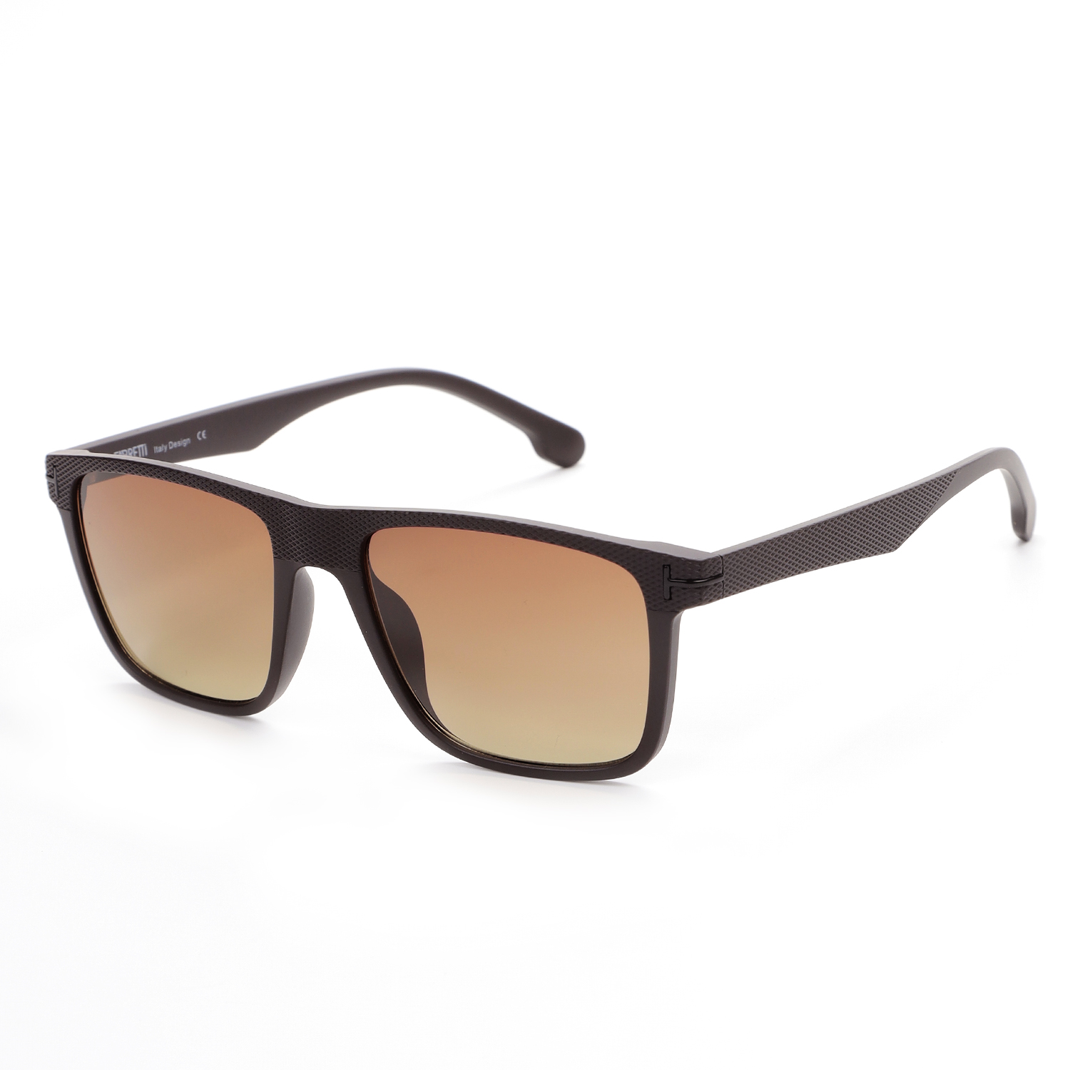 Солнцезащитные очки итальянского бренда FABRETTI в матовой коричневой оправе трапециевидной формы. Градиентные линзы в коричневом оттенке позволяют видеть одинаково хорошо как в помещении, так и на солнечной улице. Геометрическая оправа wayfarer («вайфарер») — ретро-форма, которая не теряет актуальности более полувека и сочетается с большинством типов лиц. Трапециевидная форма одинаково хорошо смотрится и в деловом, и в повседневном гардеробе.