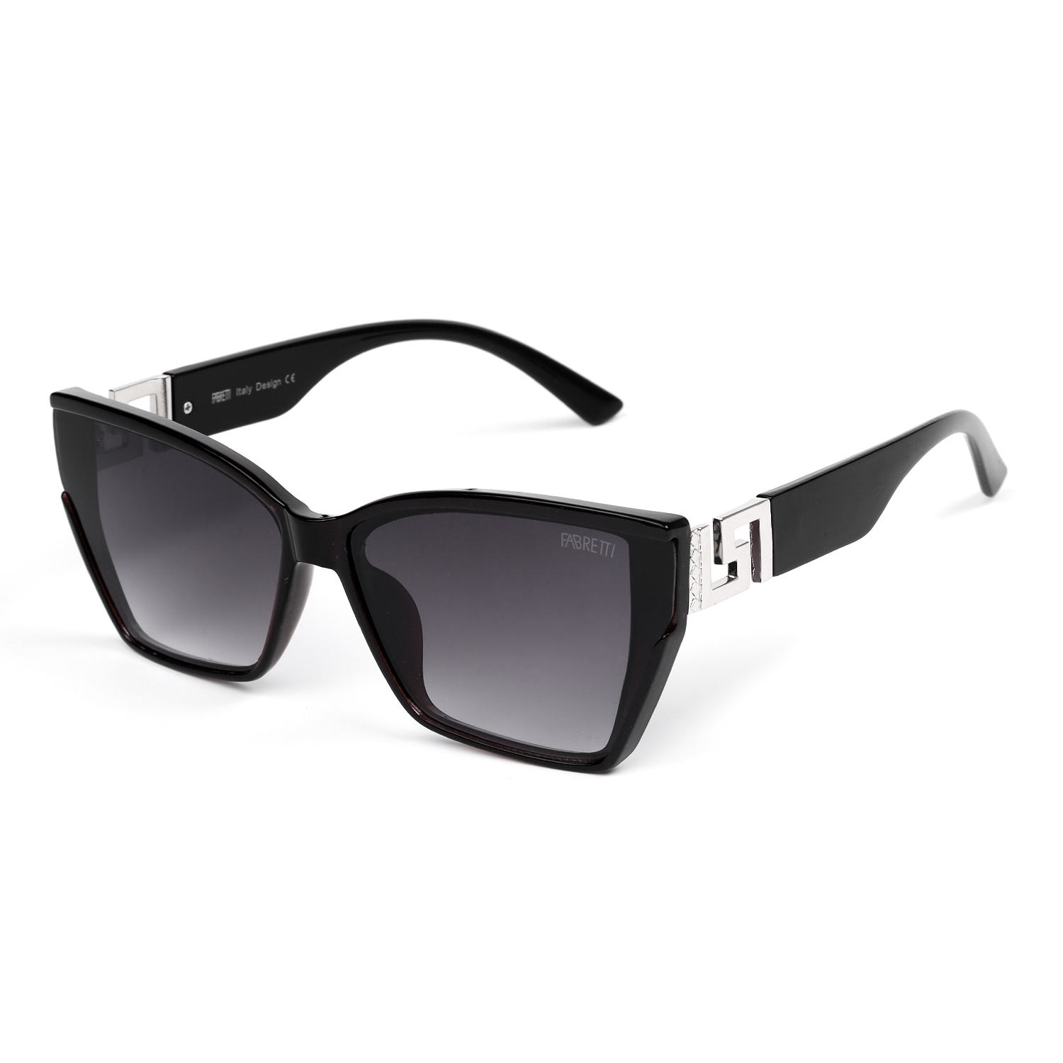 Женские солнцезащитные очки итальянского бренда FABRETTI в оправе "кошачий глаз" коричневого цвета. Градиентные серо-сиреневые линзы позволяют видеть одинаково хорошо как в помещении, так и на солнечной улице.