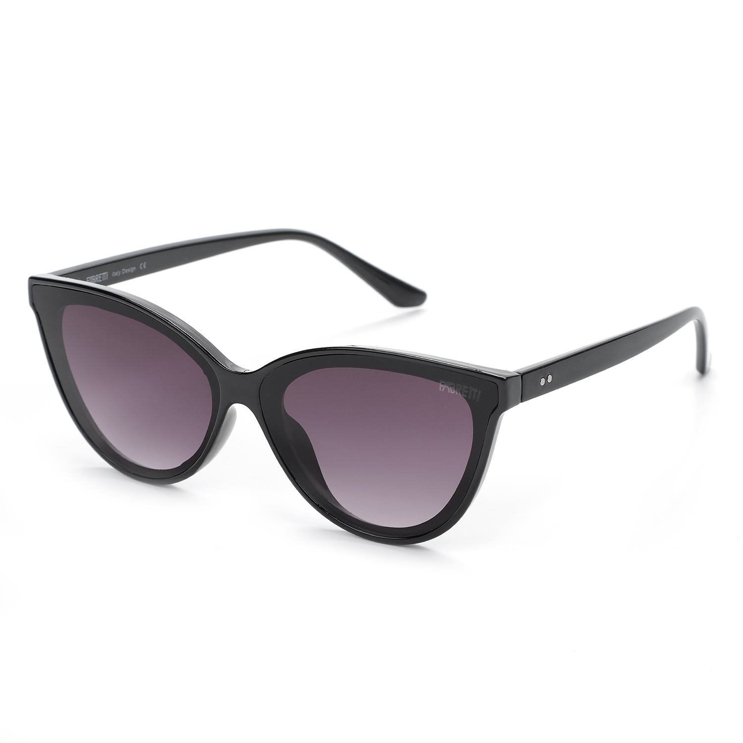 Стильные женские солнцезащитные очки итальянского бренда FABRETTI в черной оправе "кошачий глаз". Градиентные серые линзы позволяют видеть одинаково хорошо как в помещении, так и на солнечной улице.