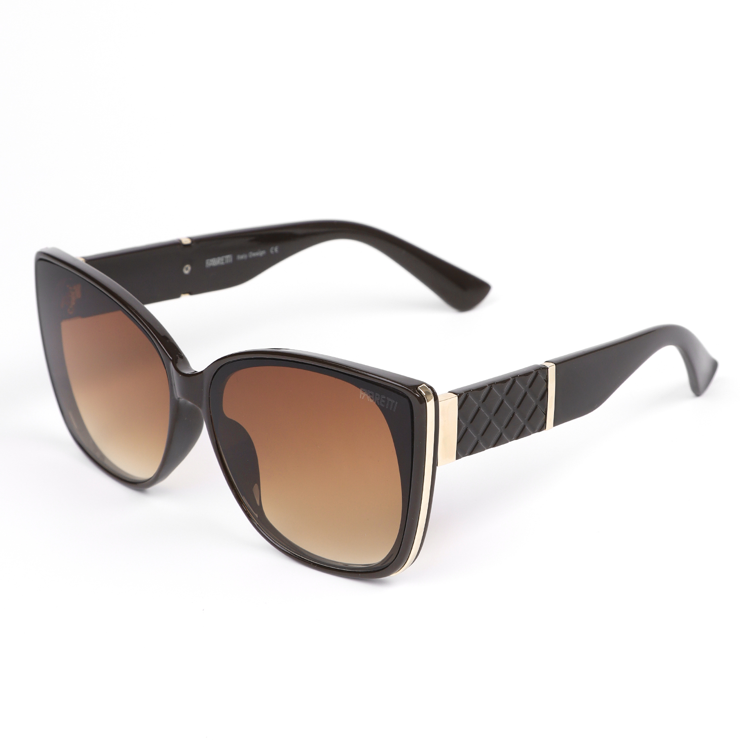 Стильные женские солнцезащитные очки итальянского бренда FABRETTI в увеличенной оправе "кошачий глаз" бордово-коричневого цвета. Градиентные желто-коричневые линзы позволяют видеть одинаково хорошо как в помещении, так и на солнечной улице.
