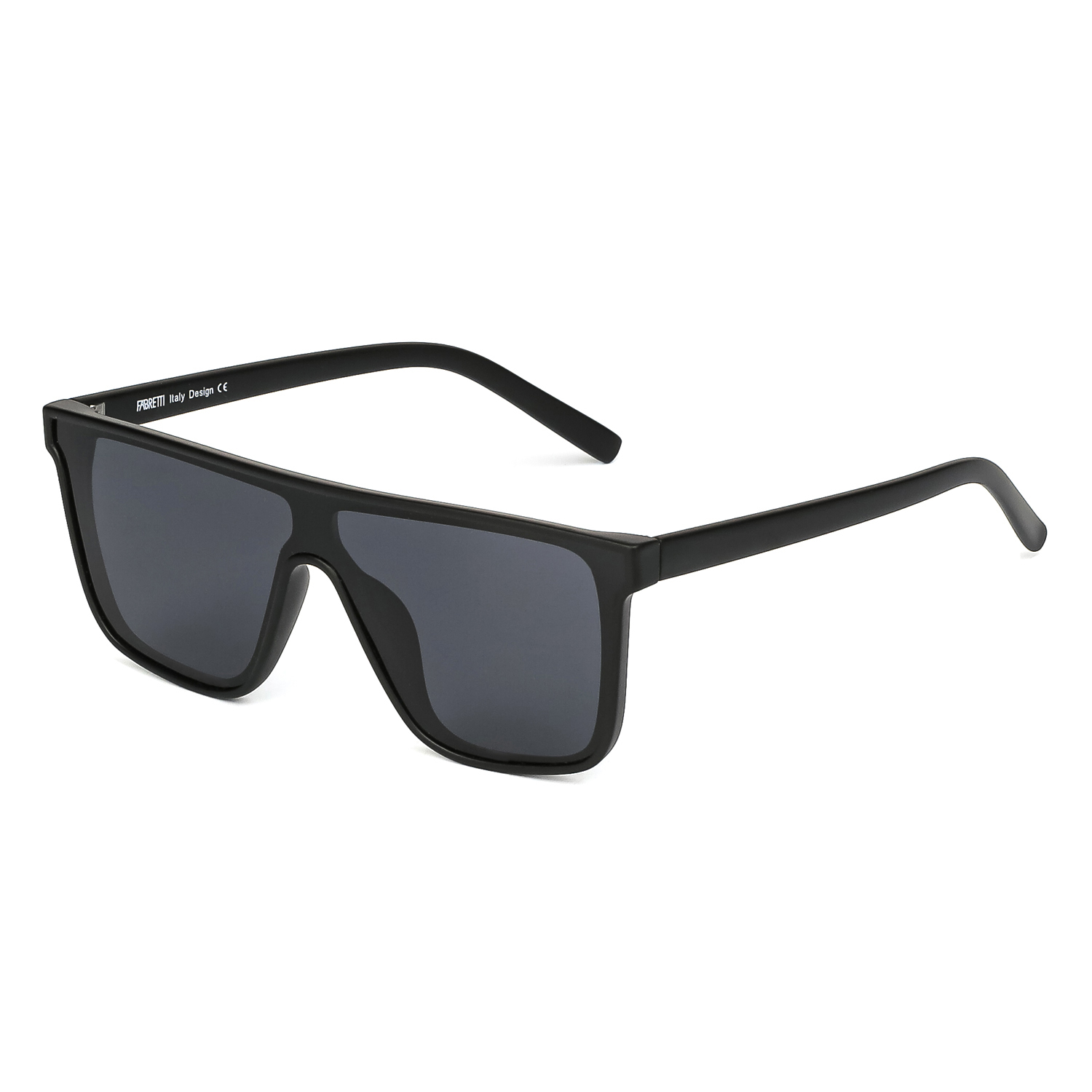 Солнцезащитные очки FABRETTI в спортивном стиле и матовой оправе из поликарбоната. Однотонные широкие линзы с поляризационным покрытием в сером оттенке позволяют видеть одинаково хорошо как в помещении, так и на солнечной улице. Категория затемнения линз - 3 (комфортно использовать в городе, для вождения, для отдыха на море и спортивных занятий в солнечную погоду). 100% защита от ультрафиолетовых лучей.