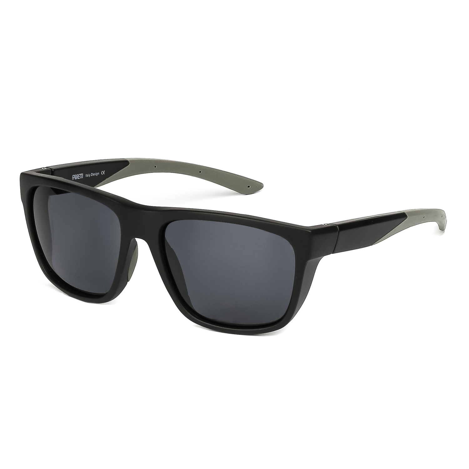 Солнцезащитные очки FABRETTI в квадратной матовой оправе из поликарбоната. Гибкие вставки на дужках с покрытием soft touch. Однотонные линзы с поляризационным покрытием в сером оттенке позволяют видеть одинаково хорошо как в помещении, так и на солнечной улице. Категория затемнения линз - 3 (комфортно использовать в городе, для вождения, для отдыха на море и спортивных занятий в солнечную погоду). 100% защита от ультрафиолетовых лучей.