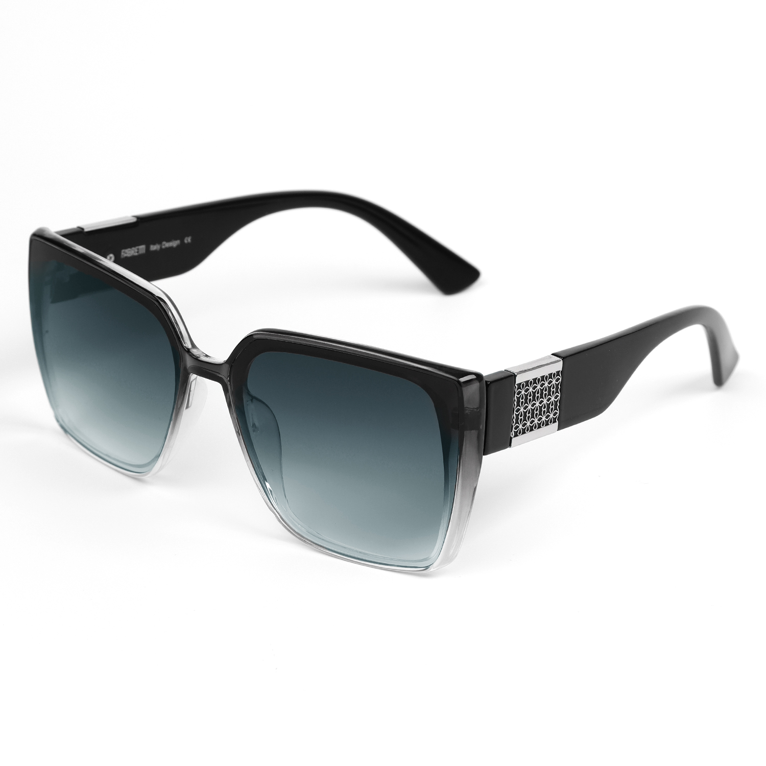Солнцезащитные очки итальянского бренда FABRETTI в полупрозрачной серой оправе трапециевидной формы. Градиентные серо-голубые линзы позволяют видеть одинаково хорошо как в помещении, так и на солнечной улице. Геометрическая оправа wayfarer («вайфарер») — ретро-форма, которая не теряет актуальности более полувека и сочетается с большинством типов лиц. Трапециевидная форма одинаково хорошо смотрится и в деловом, и в повседневном гардеробе. Дужки выполнены в черном цвете с узорной серебристой вставкой.