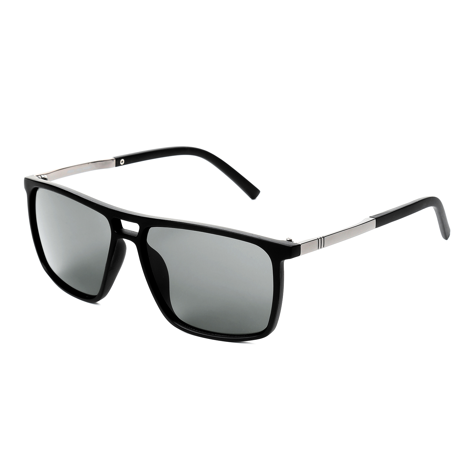 Мужские солнцезащитные очки итальянского бренда FABRETTI в матовой черной оправе квадратной формы. Однотонные серые линзы позволяют видеть одинаково хорошо как в помещении, так и на солнечной улице.
