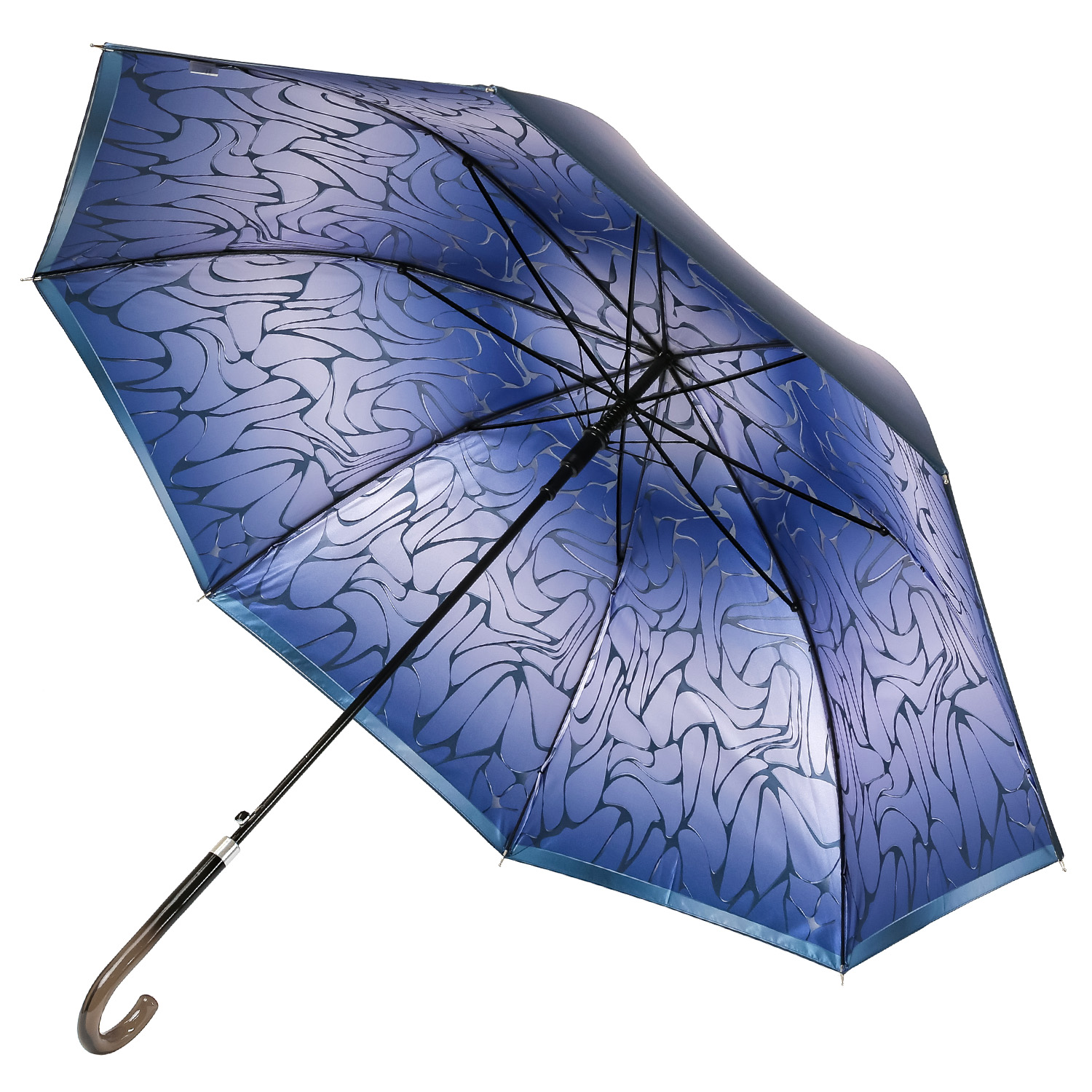 Двойной купол женского зонта-трости FABRETTI выполнен из полиэстера с приятной гладкой фактурой и сатиновым блеском. Верх – в градиентном синем оттенке. Внутренняя сторона зонта украшена эффектным абстрактным принтом. Конструкция зонта изготовлена из прочной стали, эргономичная ручка, образующая изящный крюк, - из прозрачного пластика. Механизм модели - полуавтомат, что подразумевает раскрытие путем нажатия на кнопку. Закрывается зонт вручную. На чехле зонта предусмотрены 2 лямки, позволяющие комфортно носить аксессуар в руке или на плечах.